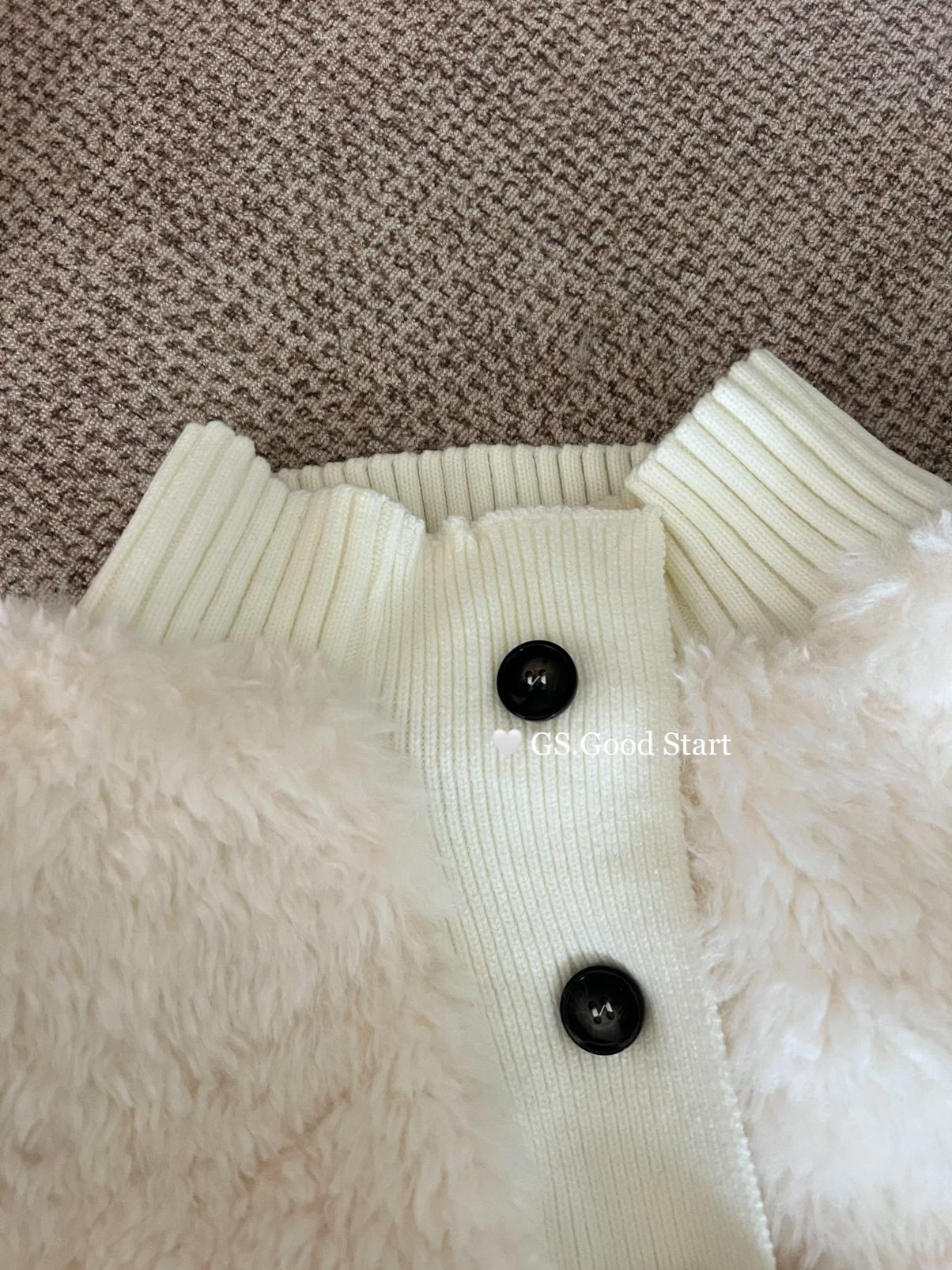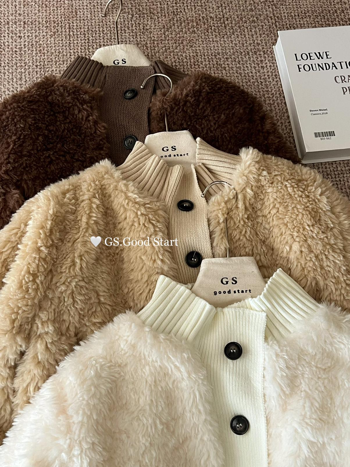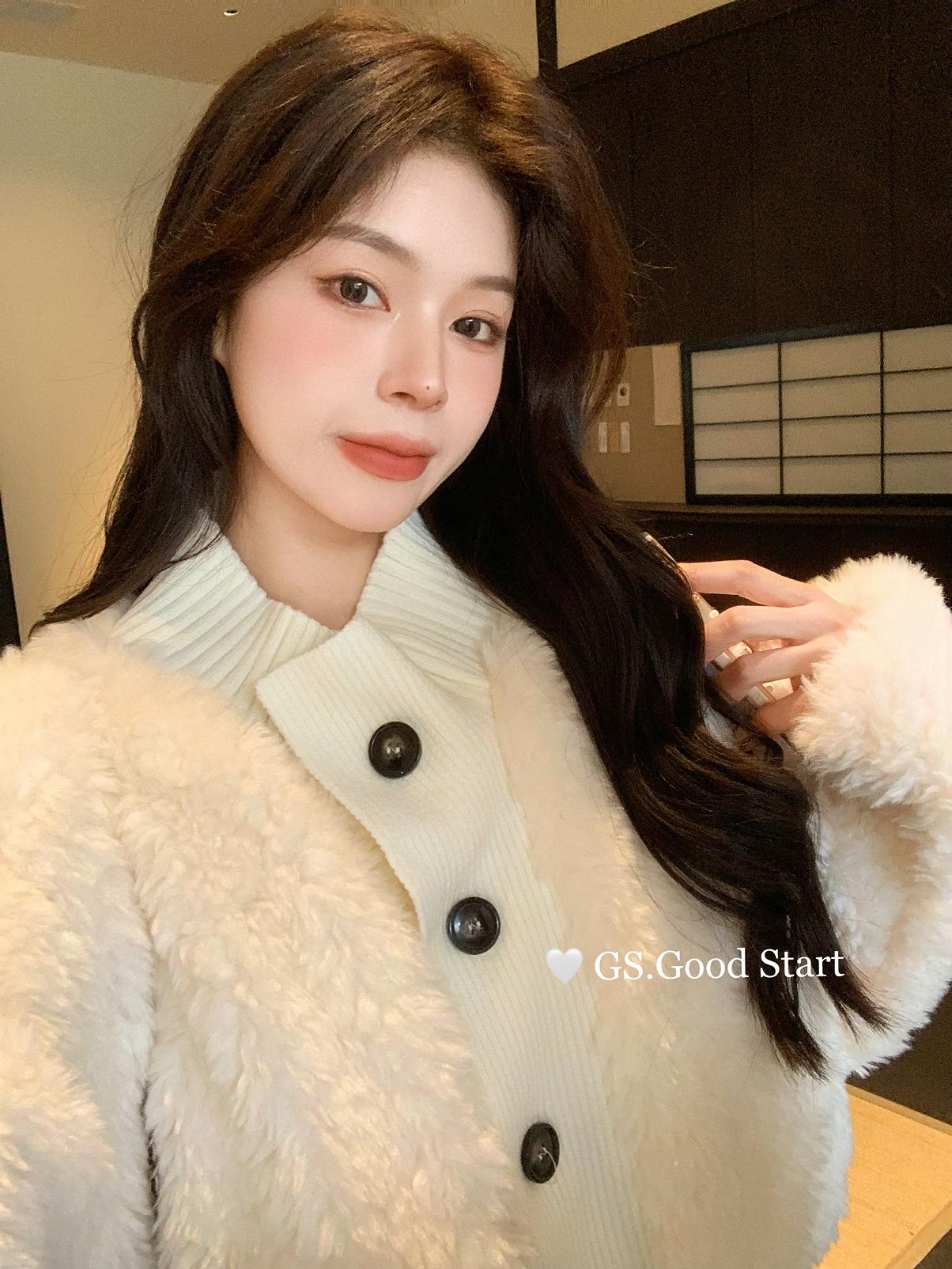 【C8010】博主都在穿!軟軟糯糯*都捨不得脫~冬季時髦休閒拼接針織羊羔毛短外套