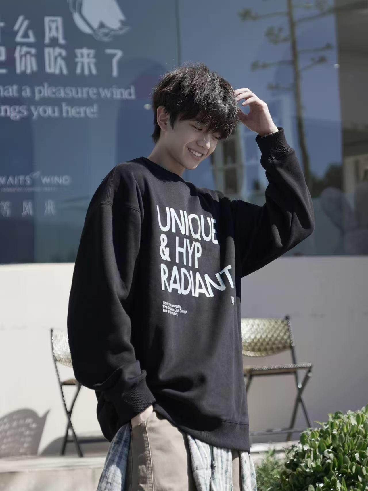 【YS2641】美式時尚潮流加絨加厚休閒百搭圓領衛衣
