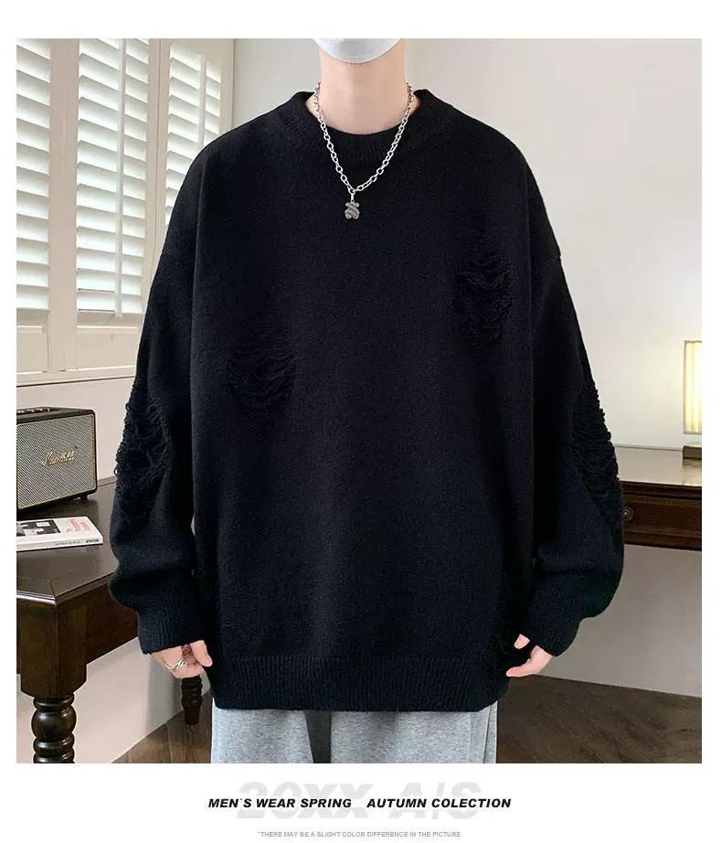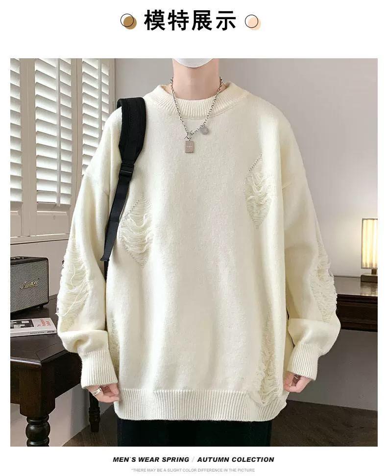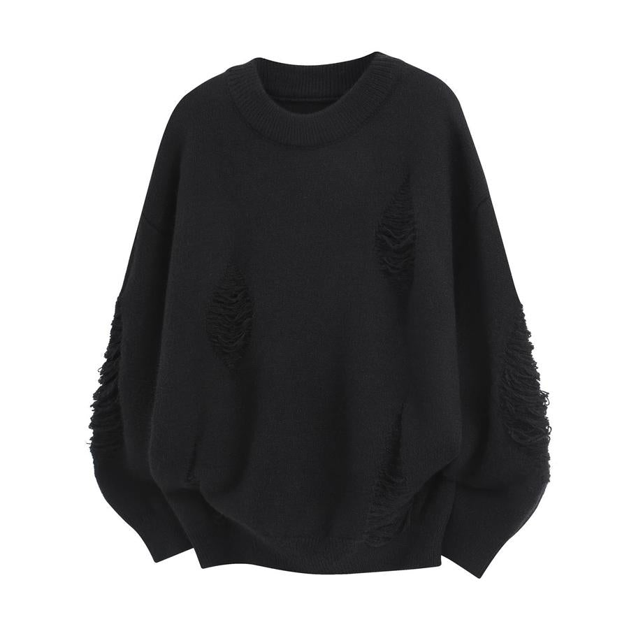 【YS2615】慵懶風圓領寬鬆破洞保暖毛衣