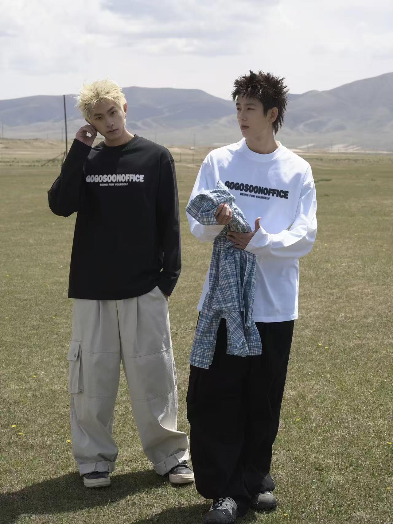 【YS2653】竹節棉圓領長袖T恤男士寬鬆日系復古衛衣