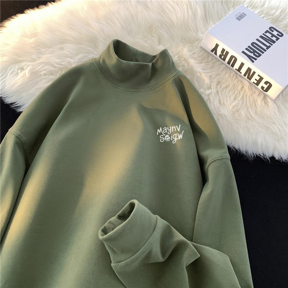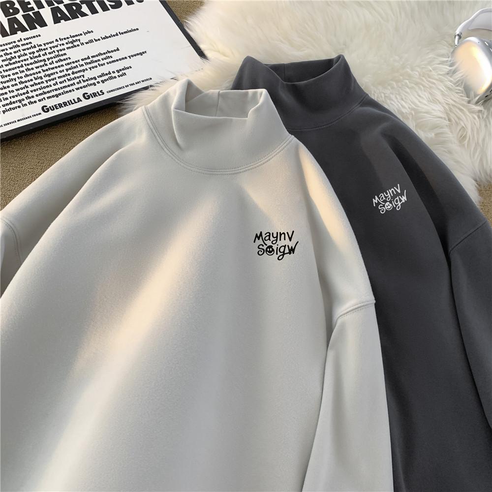 【YS2648】半高領字母印花百搭寬鬆長袖T恤