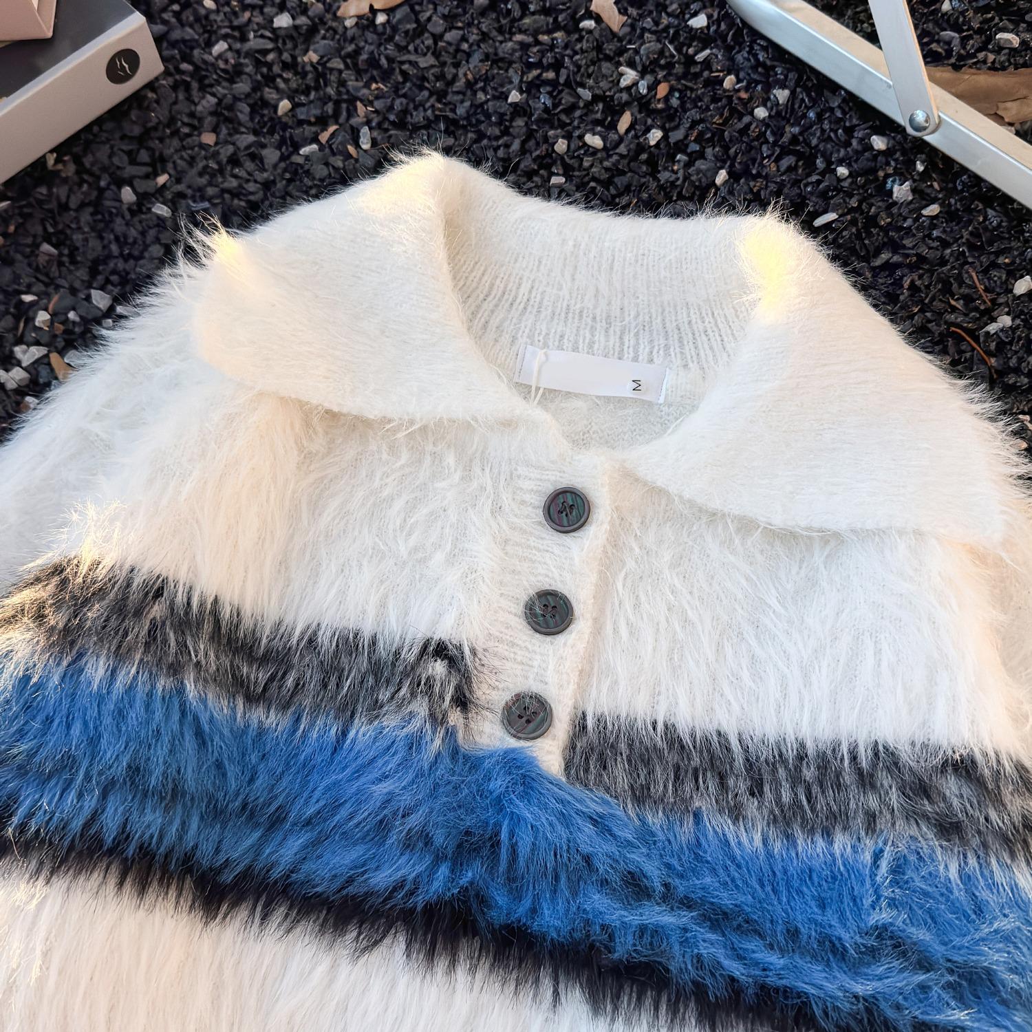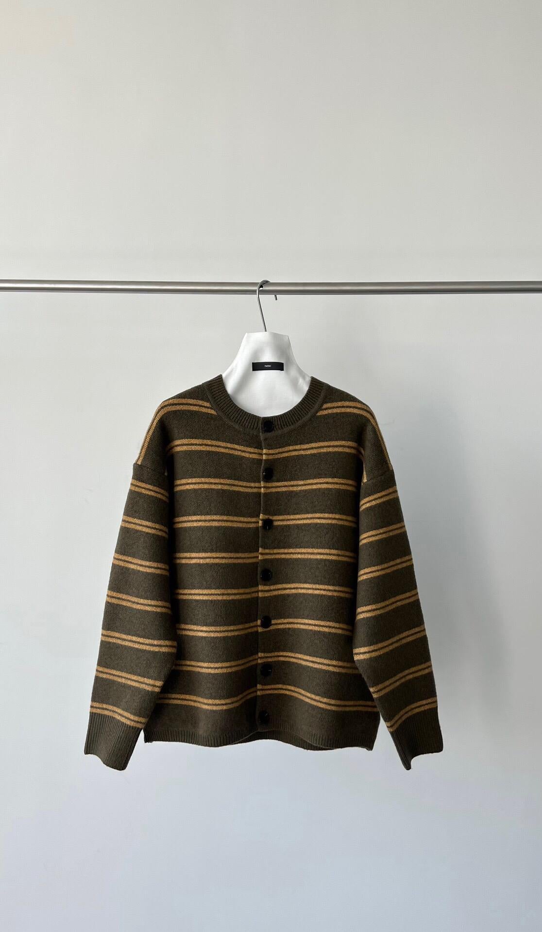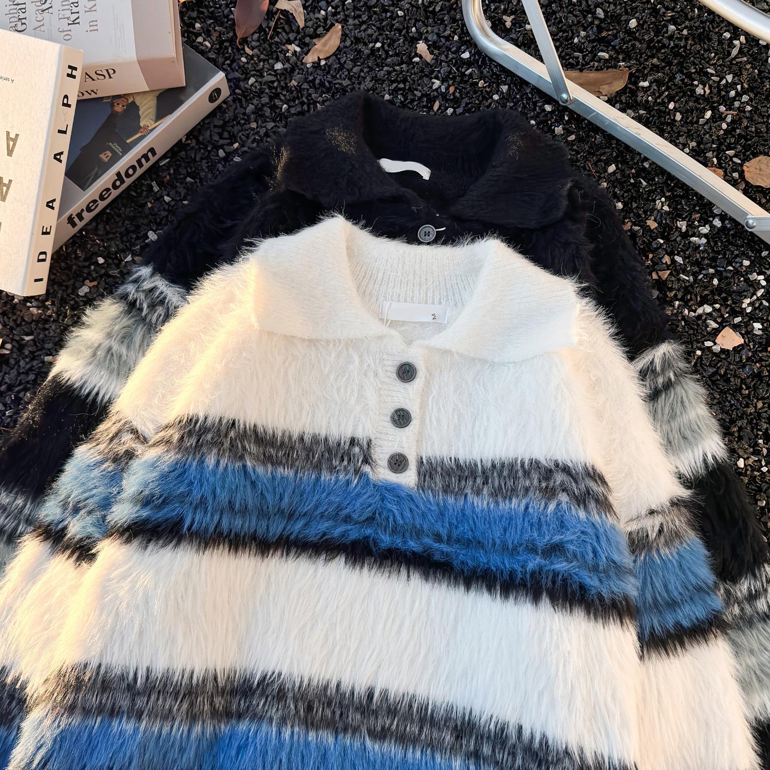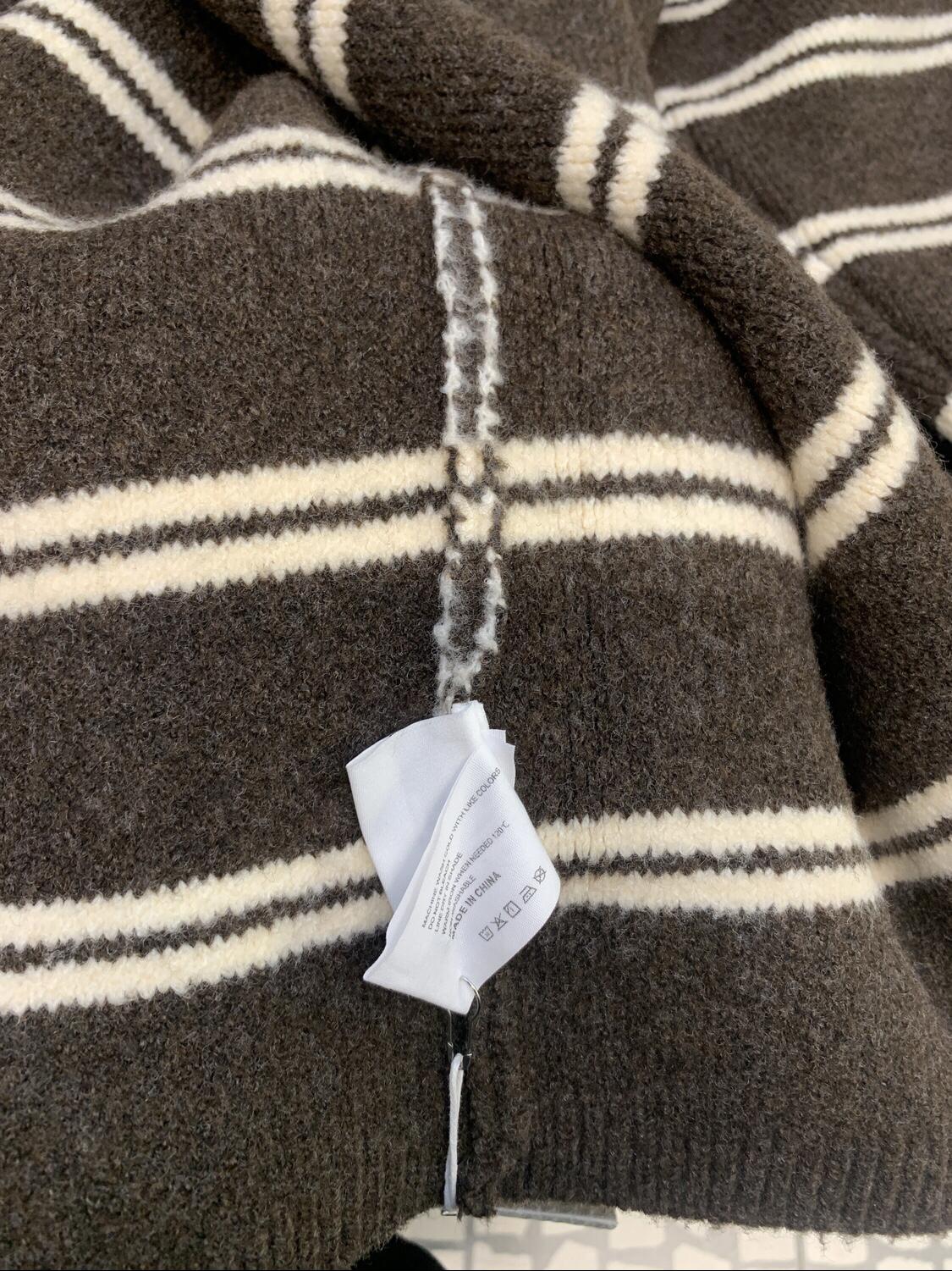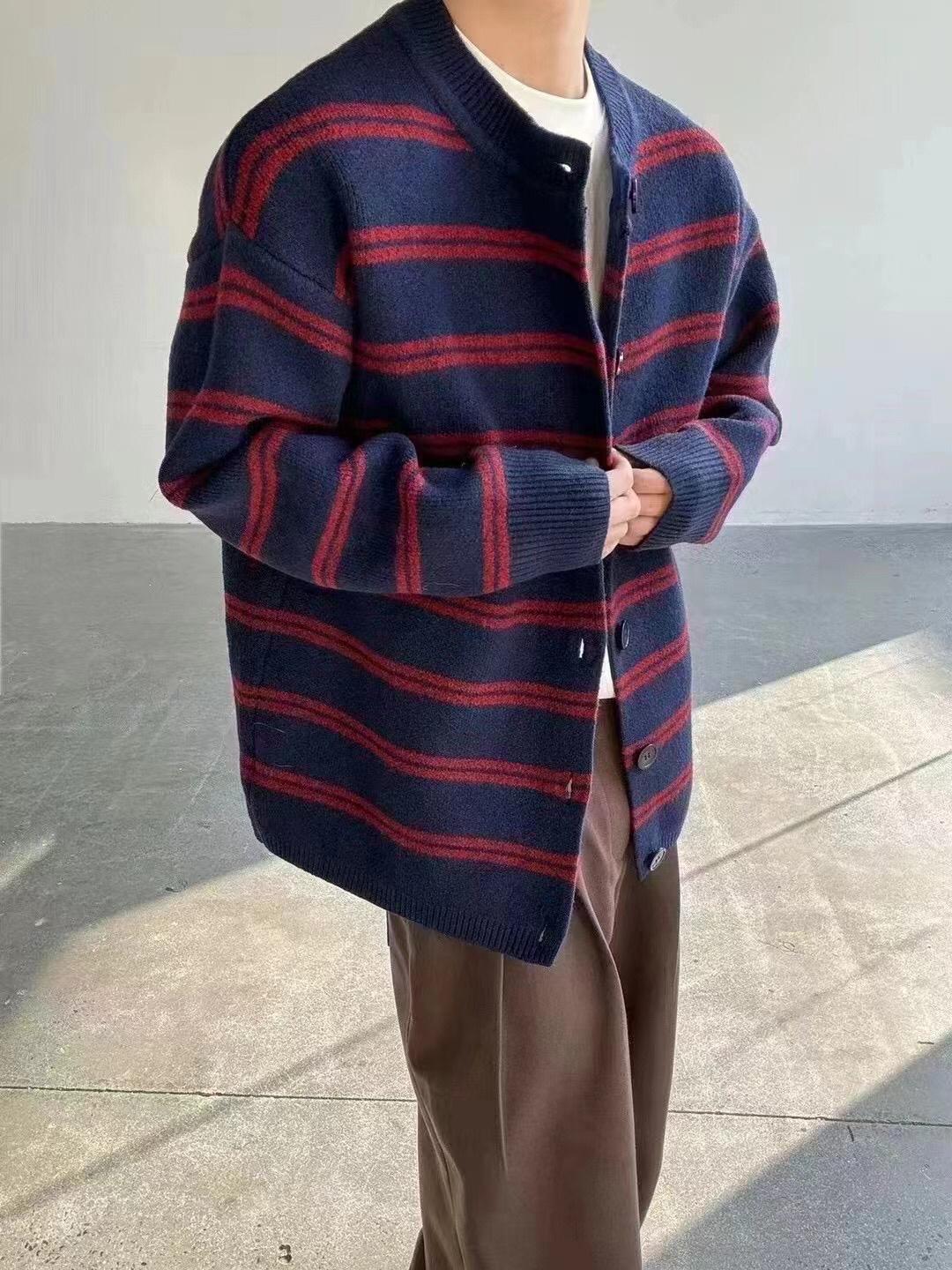 【YS2627】慵懶風圓領條紋開衫保暖毛衣