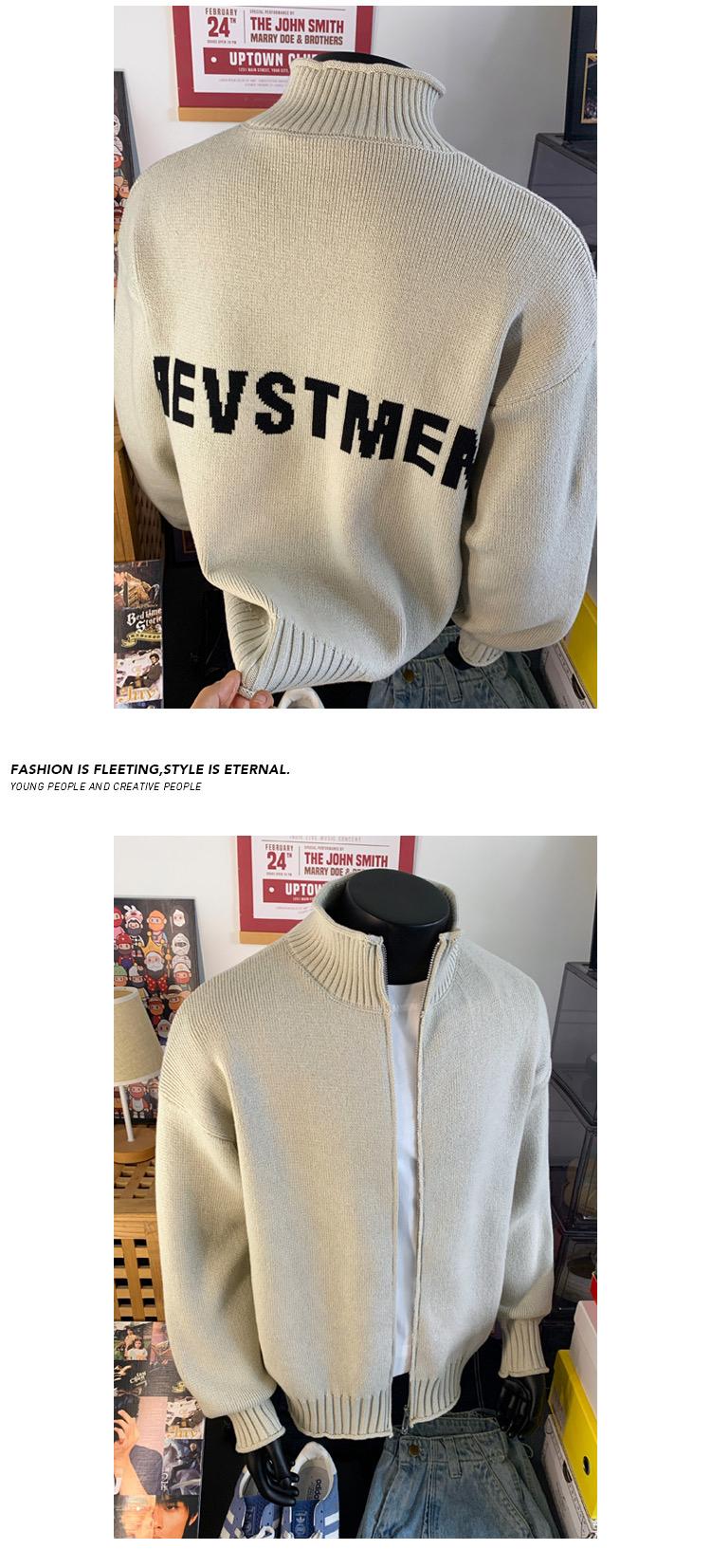 【YS2626】時尚百搭字母提花立領拉鍊長袖保暖毛衣
