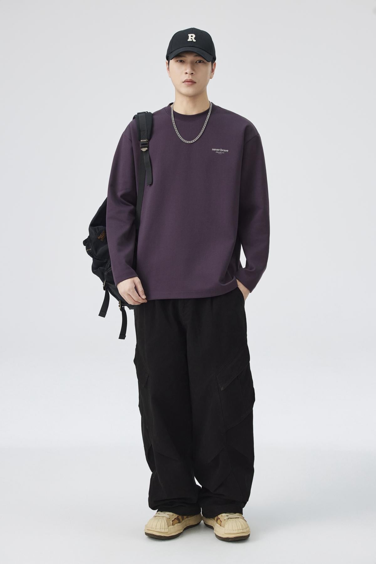 3. 【YS2220】潮牌字母印花寬鬆基礎百搭親膚圓領長袖T恤