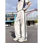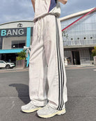 【YS2241】美式時尚潮流三條槓直筒休閒褲