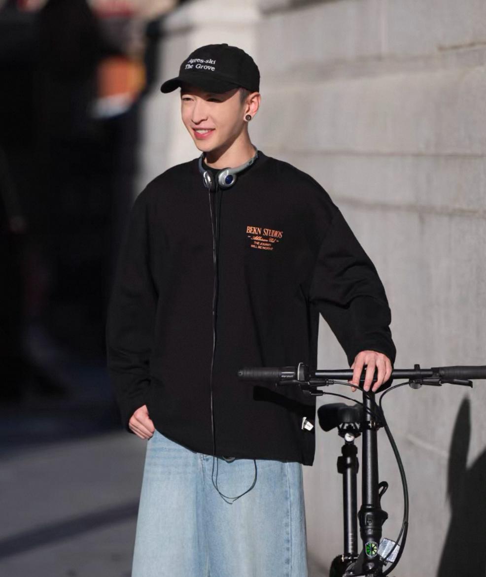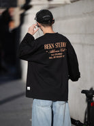【YS2291】美式復古圓領寬鬆印花長袖T恤