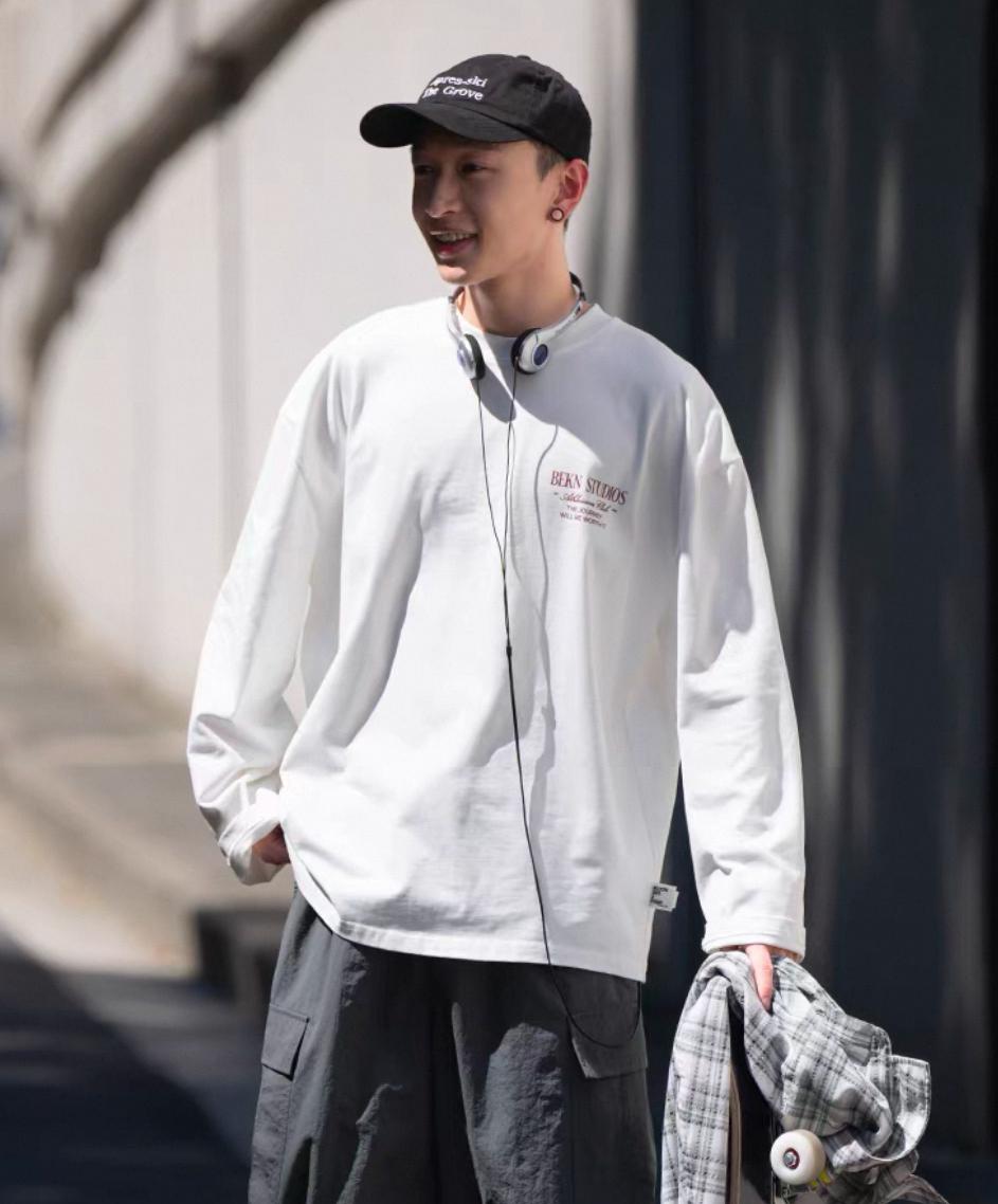 3. 【YS2291】美式復古圓領寬鬆印花長袖T恤