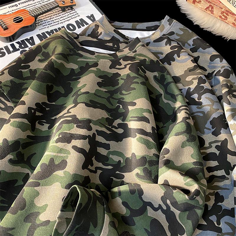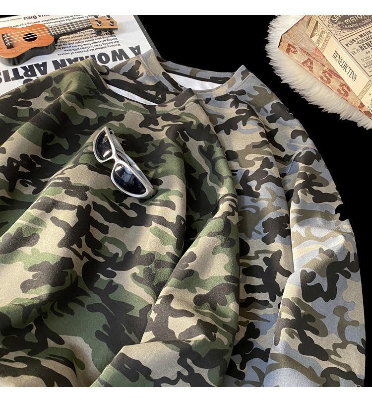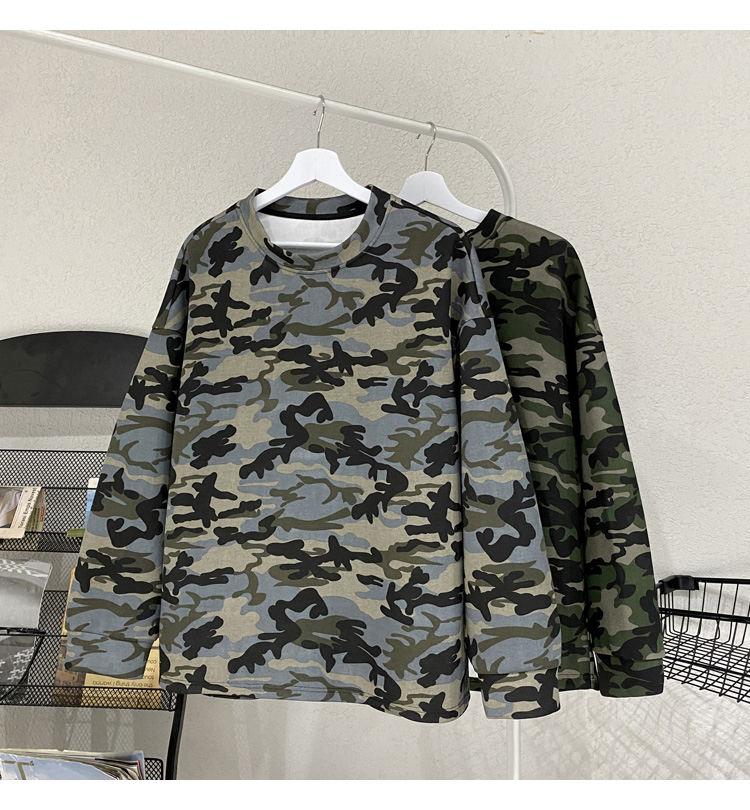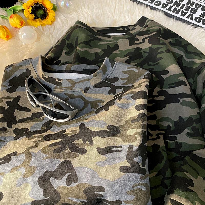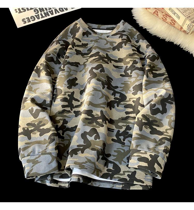 【YS2298】秋季美式復古迷彩衛衣寬鬆休閒百搭高級感上衣衛衣