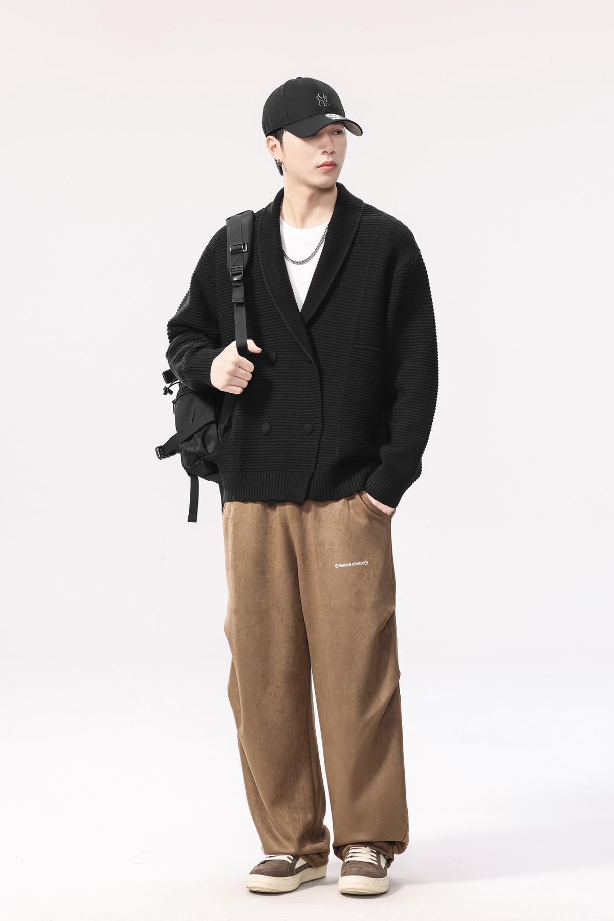 【YS2356】雙排扣針織開衫秋冬簡約大方寬鬆保暖毛衣