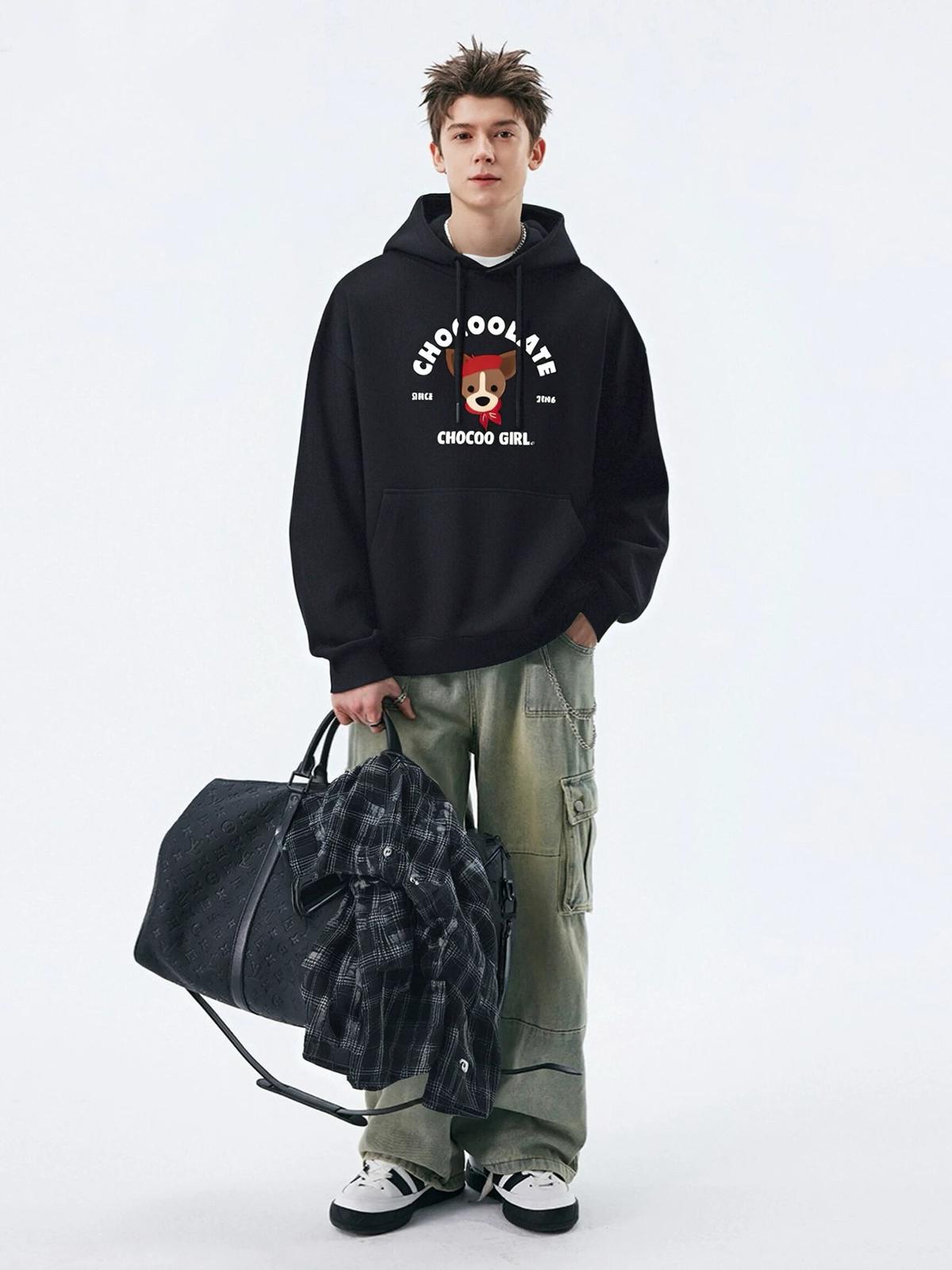 【YS2406】美式復古連帽寬鬆印花衛衣