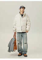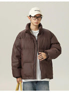 3. 【YS2414】立領純色PU皮加厚麪包保暖棉服外套