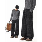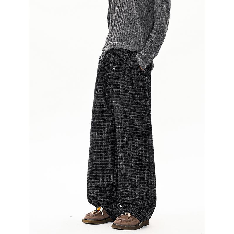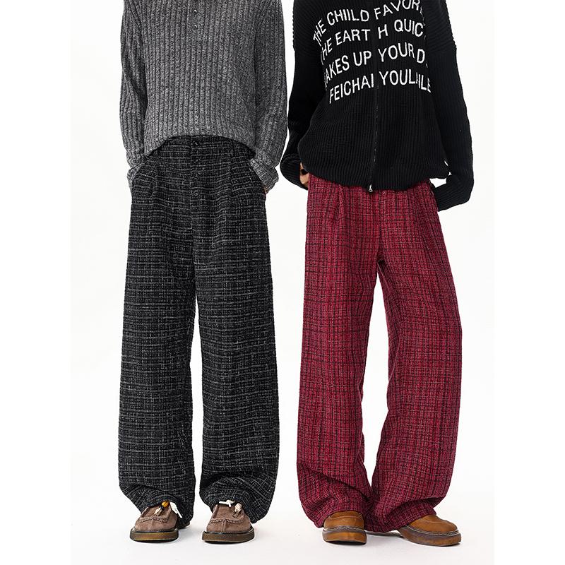 【YS2427】垂墜感挺括文藝酷感英倫街頭時髦格紋闊腿褲休閒褲
