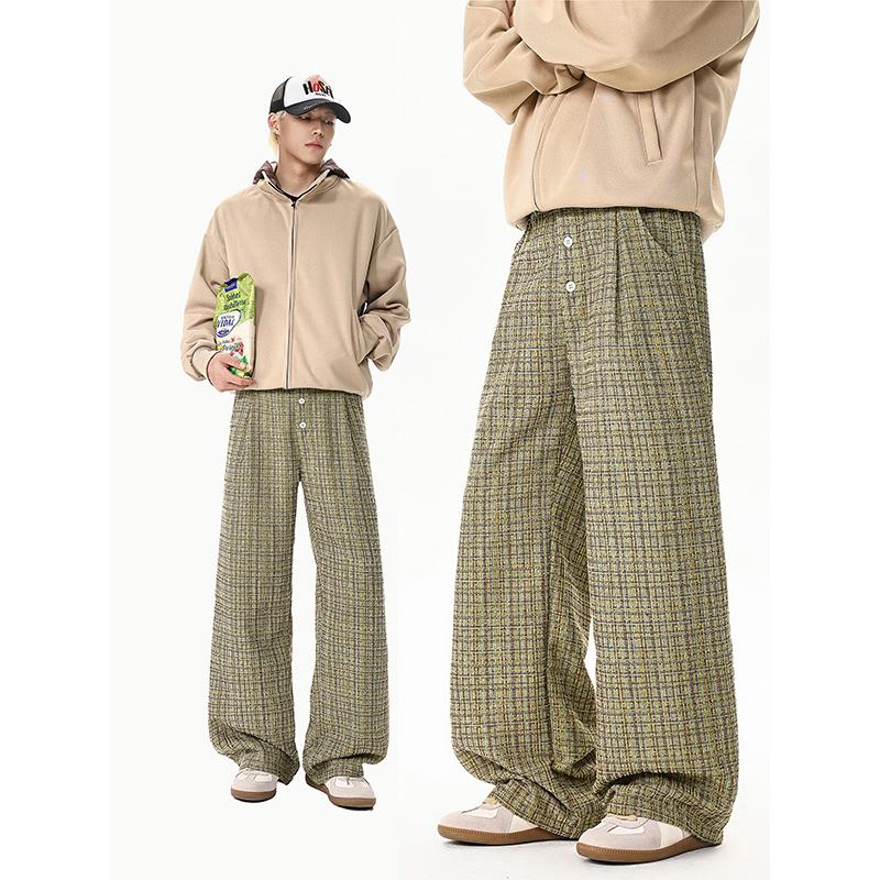 3. 【YS2427】垂墜感挺括文藝酷感英倫街頭時髦格紋闊腿褲休閒褲
