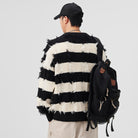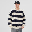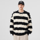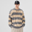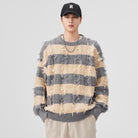 【YS2428】高級撞色條紋流蘇寬鬆圓領時尚保暖毛衣