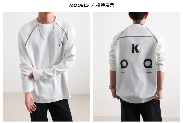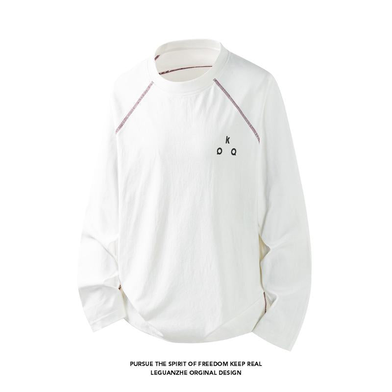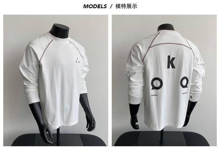 3. 【YS2441】2025 秋季新款白底大碼圓領撞色時尚潮流長袖T恤