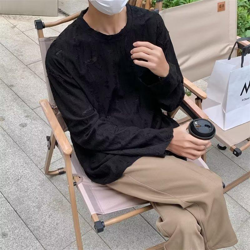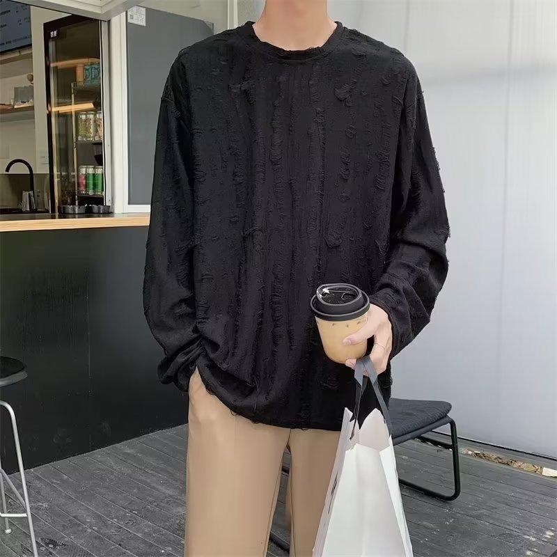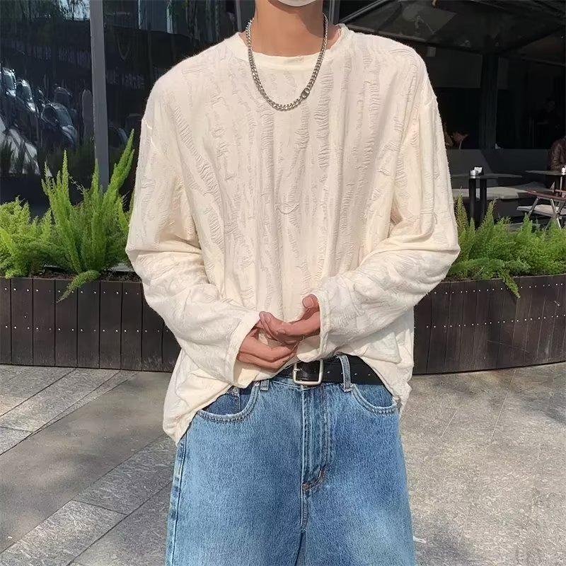 3. 【YS2442】鹽系外套寬鬆慵懶風學生長袖圓領上衣潮長袖T恤
