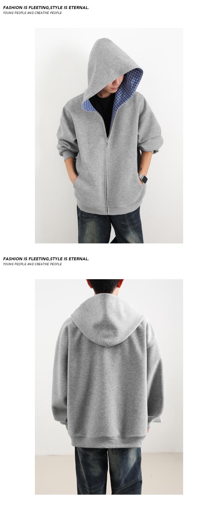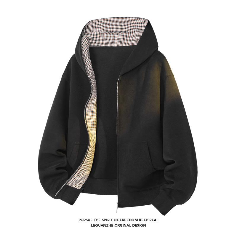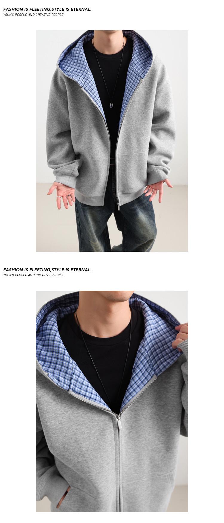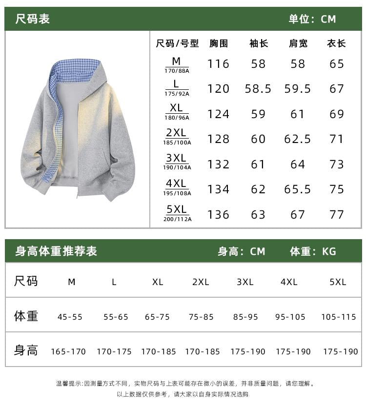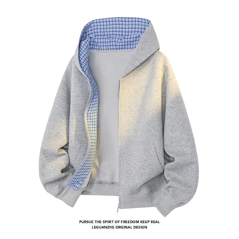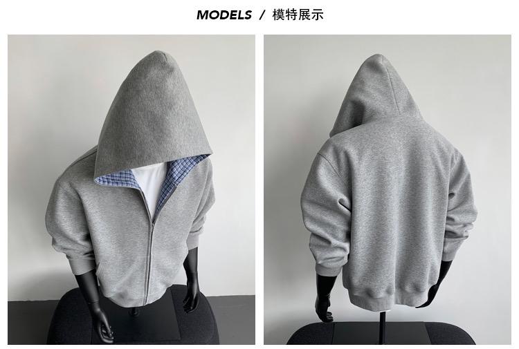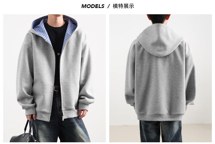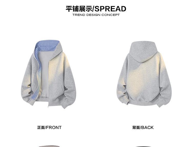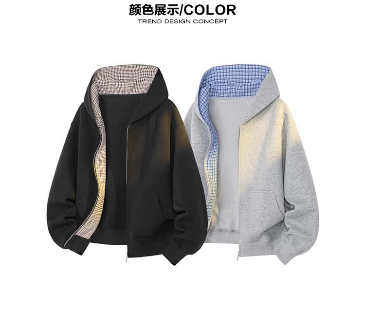 【YS2446】2025 秋冬季新款格子撞色設計爆款大碼400g重磅衛衣外套