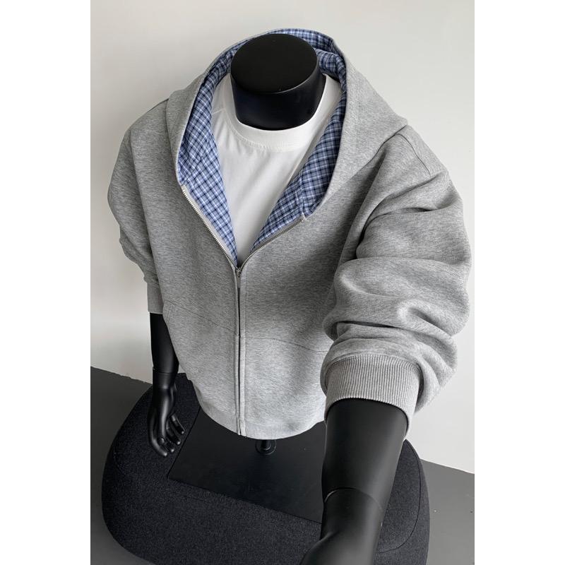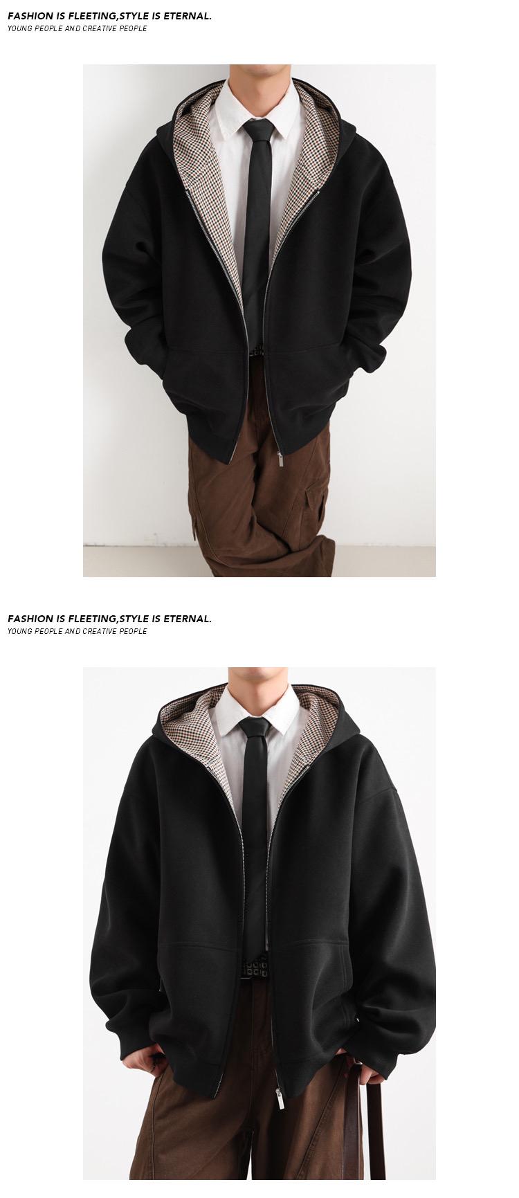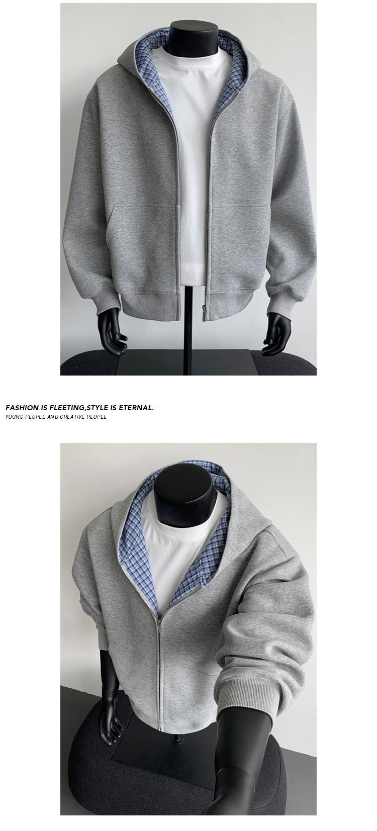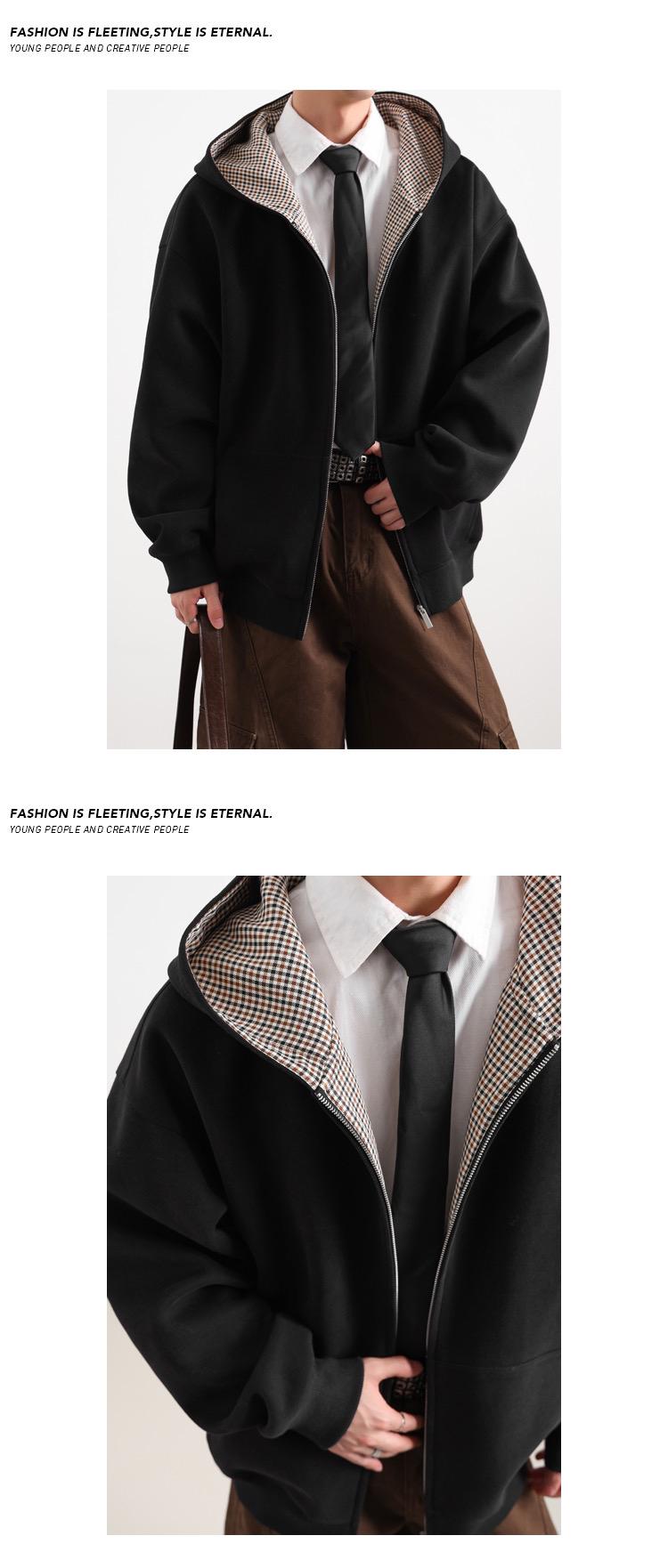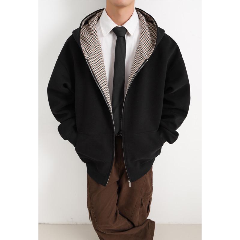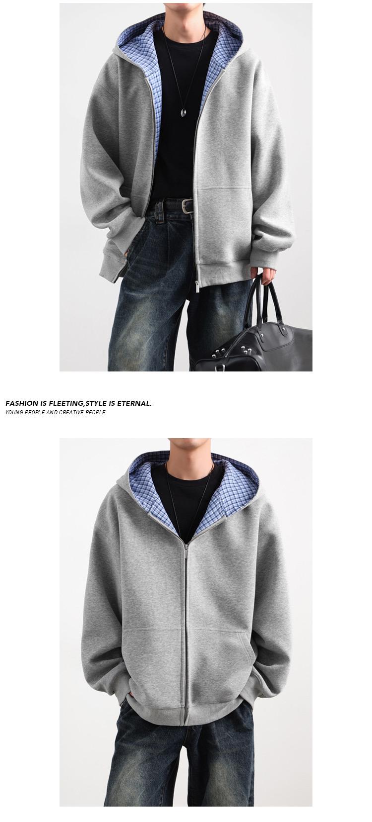 【YS2446】2025 秋冬季新款格子撞色設計爆款大碼400g重磅衛衣外套