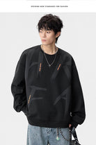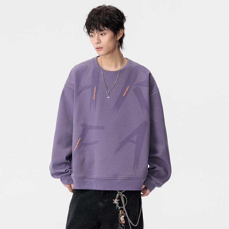 【YS2459】美式時尚潮流寬鬆休閒圓領字母刺繡加絨衛衣