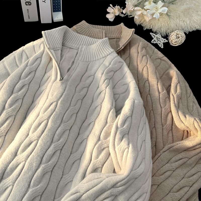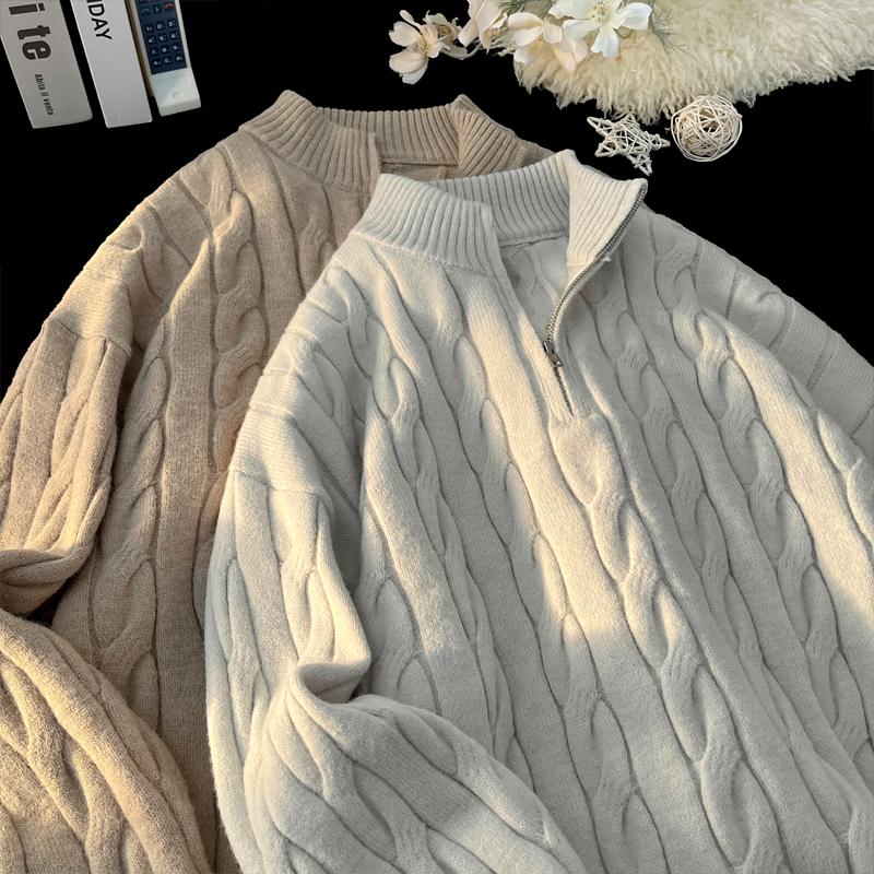 【YS2471】麻花半拉鍊休閒保暖毛衣