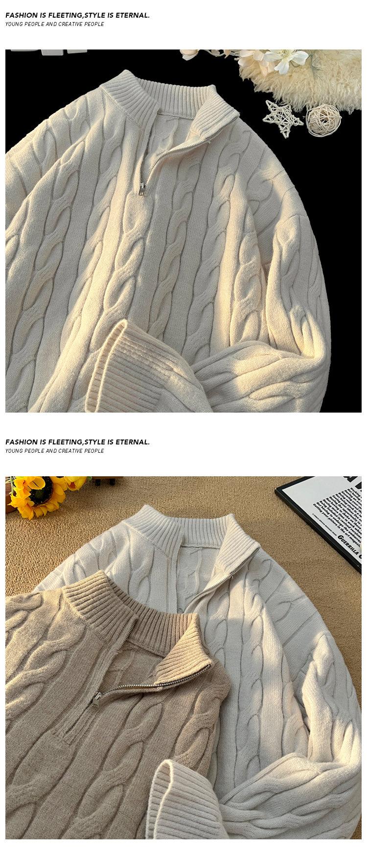 3. 【YS2471】麻花半拉鍊休閒保暖毛衣
