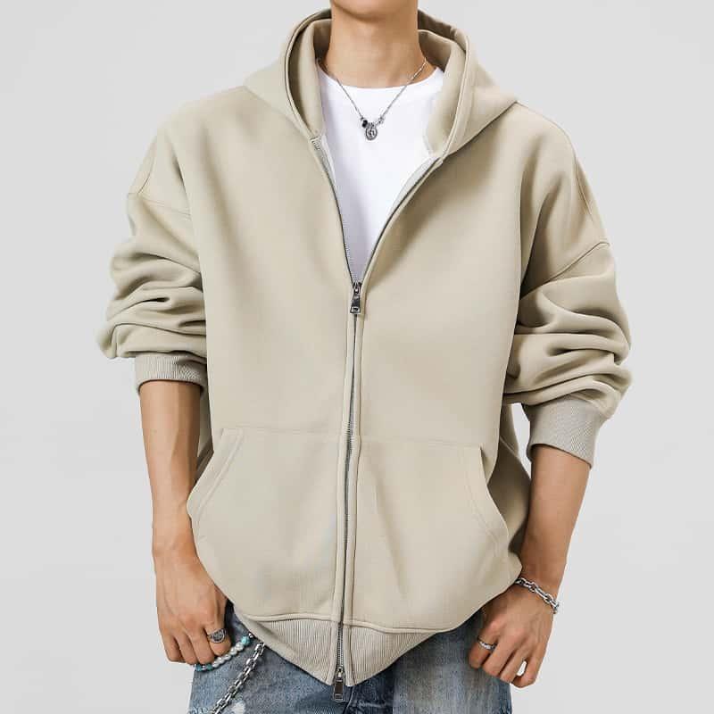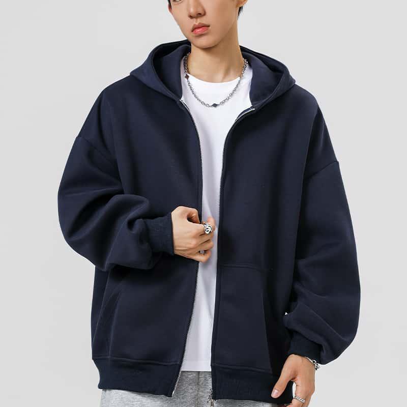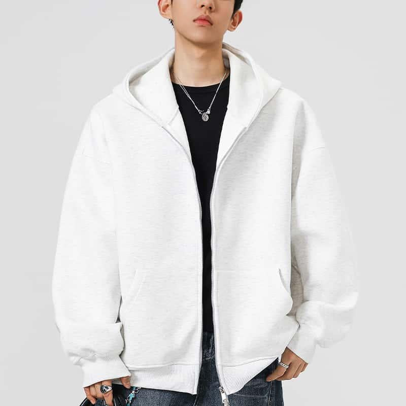 【YS2477】連帽拉鍊寬鬆純色衛衣外套
