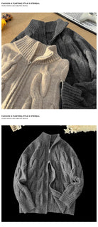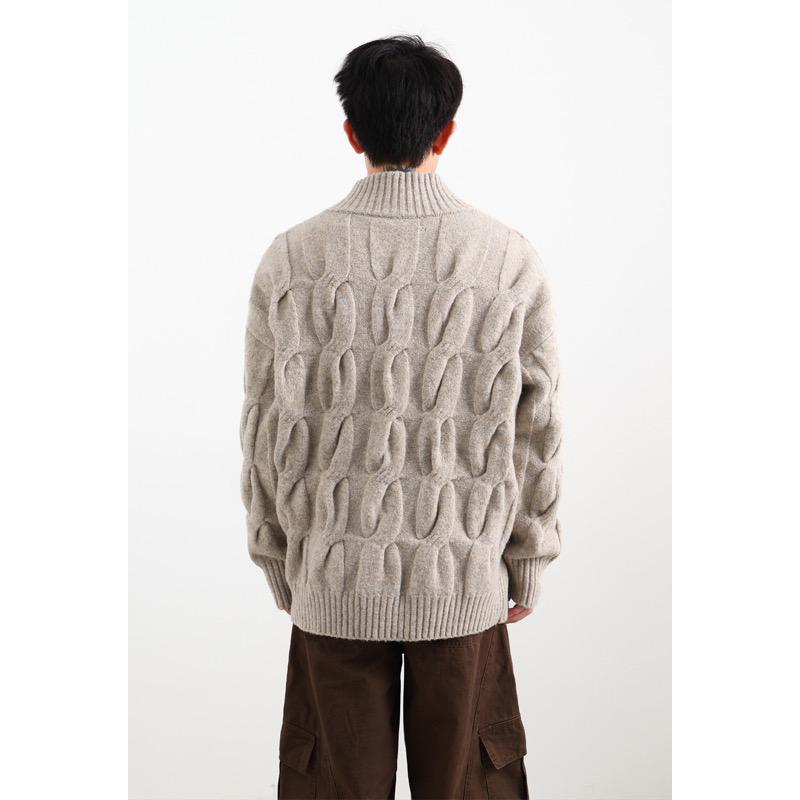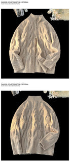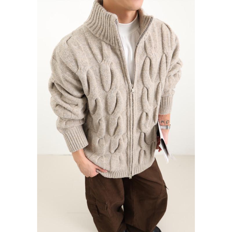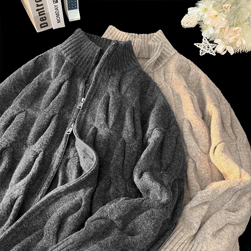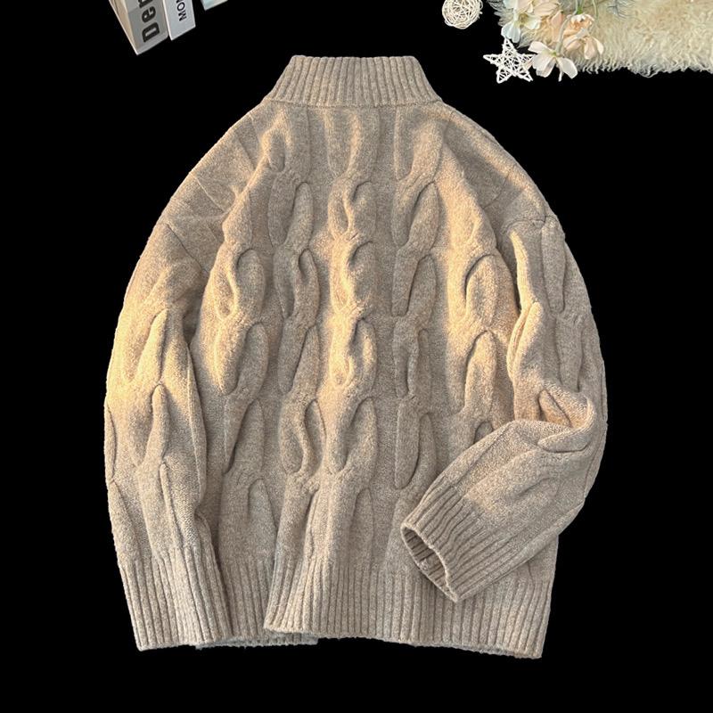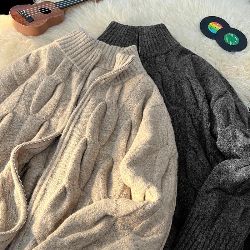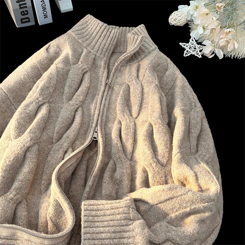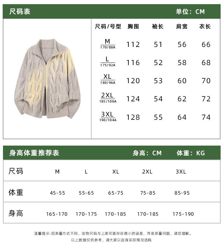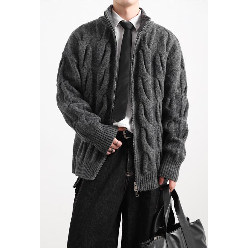3. 【YS2624】2025冬季新款大碼時尚百搭簡約麻花開衫保暖毛衣