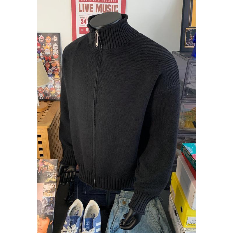 3. 【YS2626】時尚百搭字母提花立領拉鍊長袖保暖毛衣