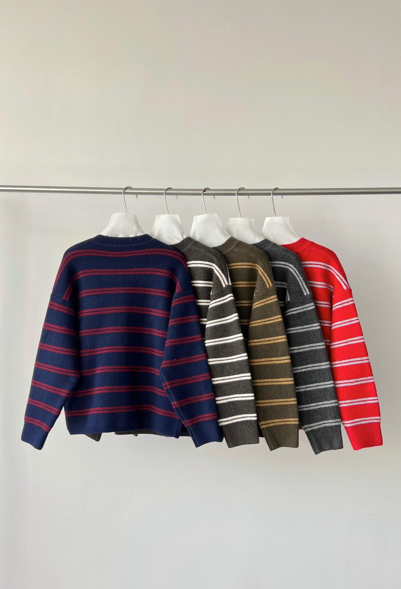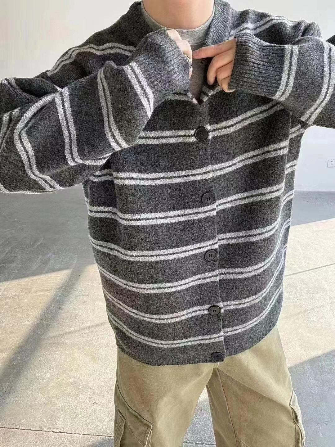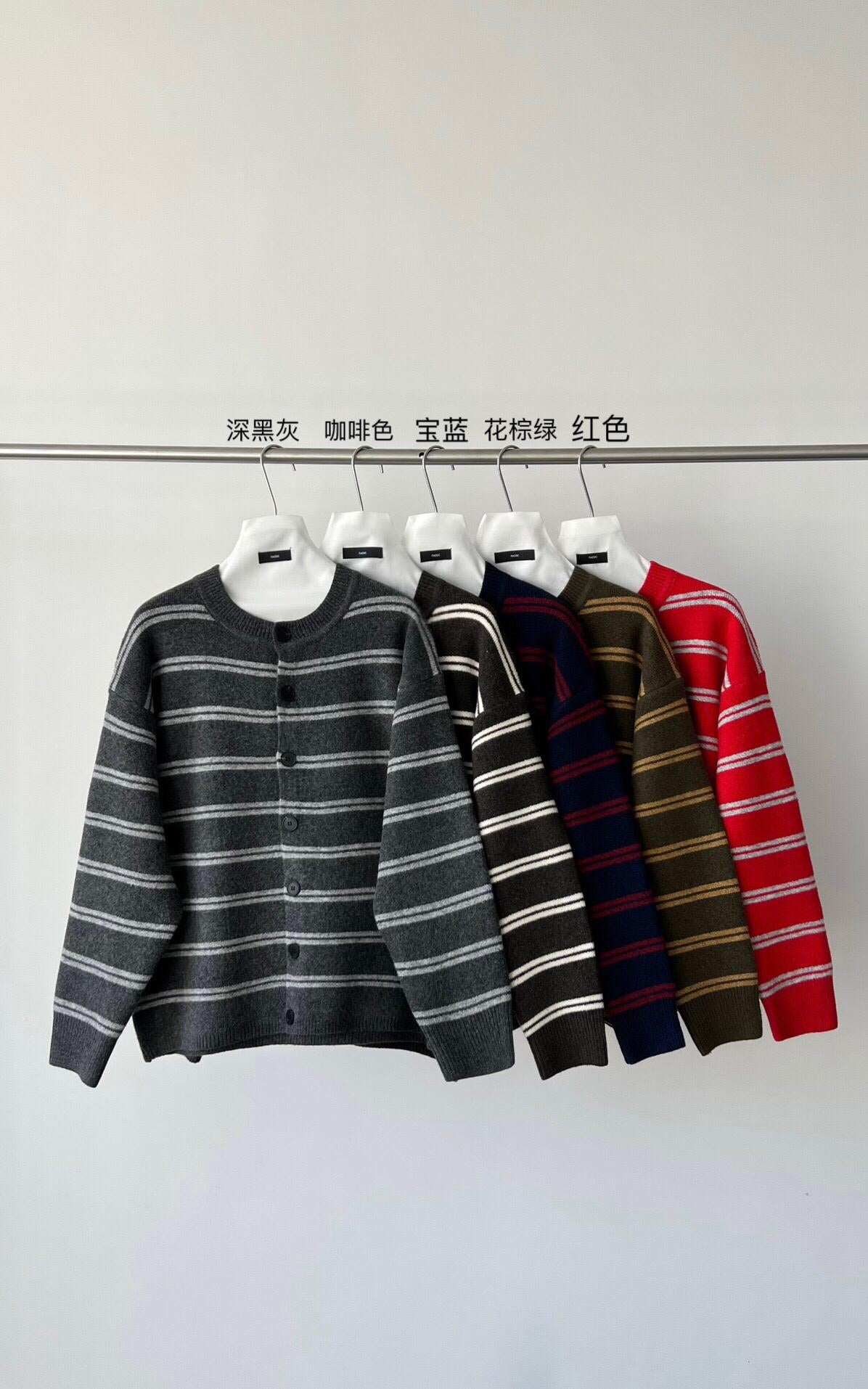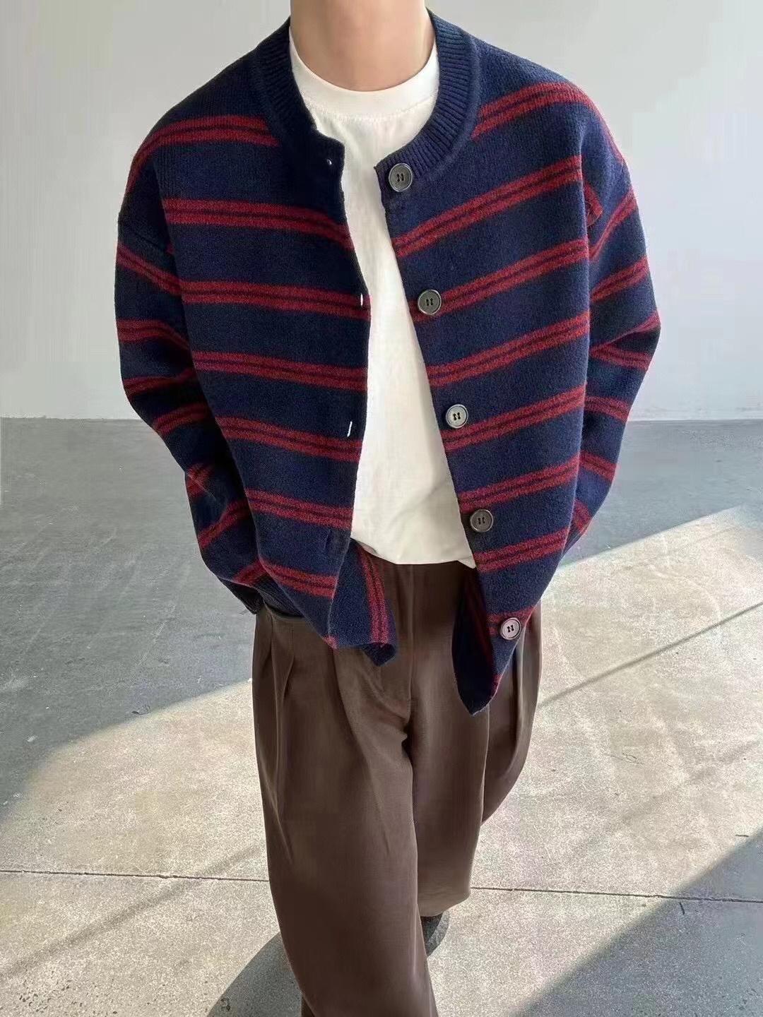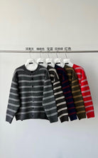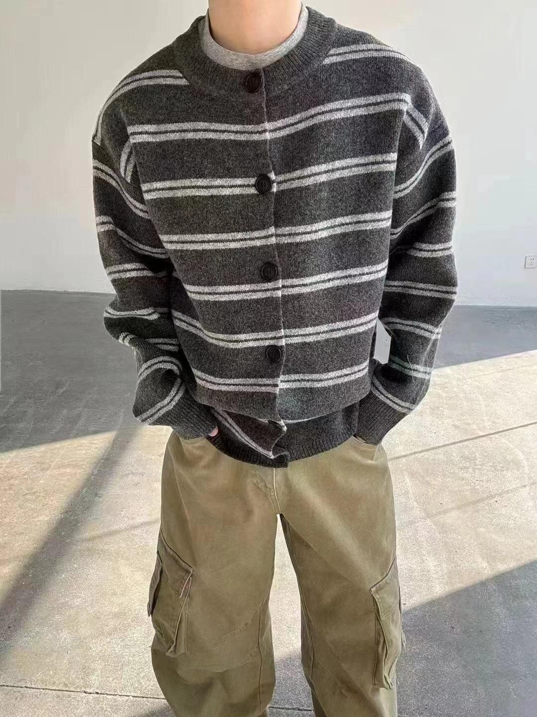 【YS2627】慵懶風圓領條紋開衫保暖毛衣