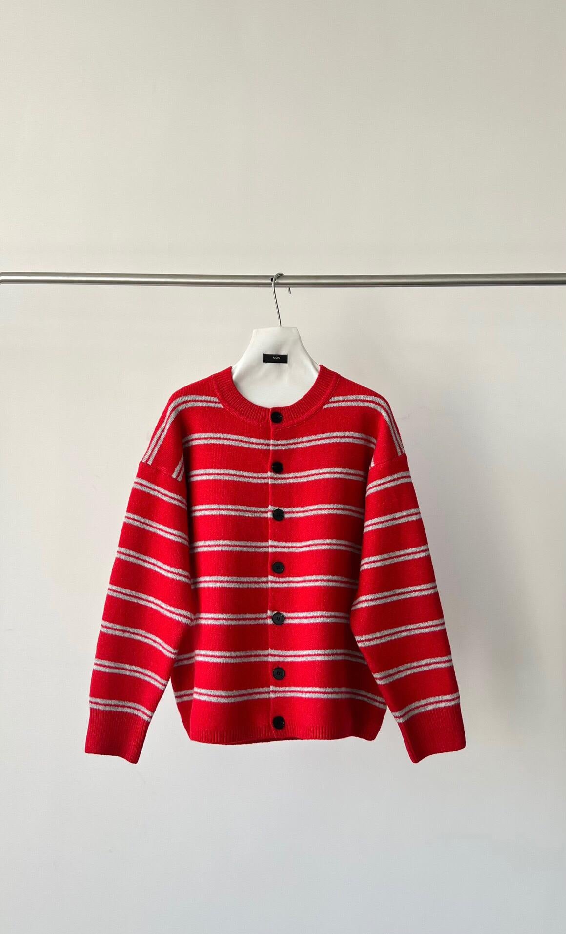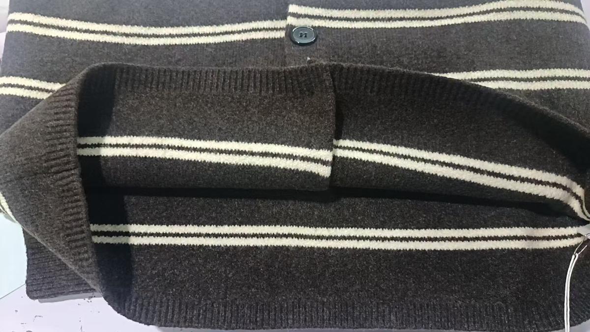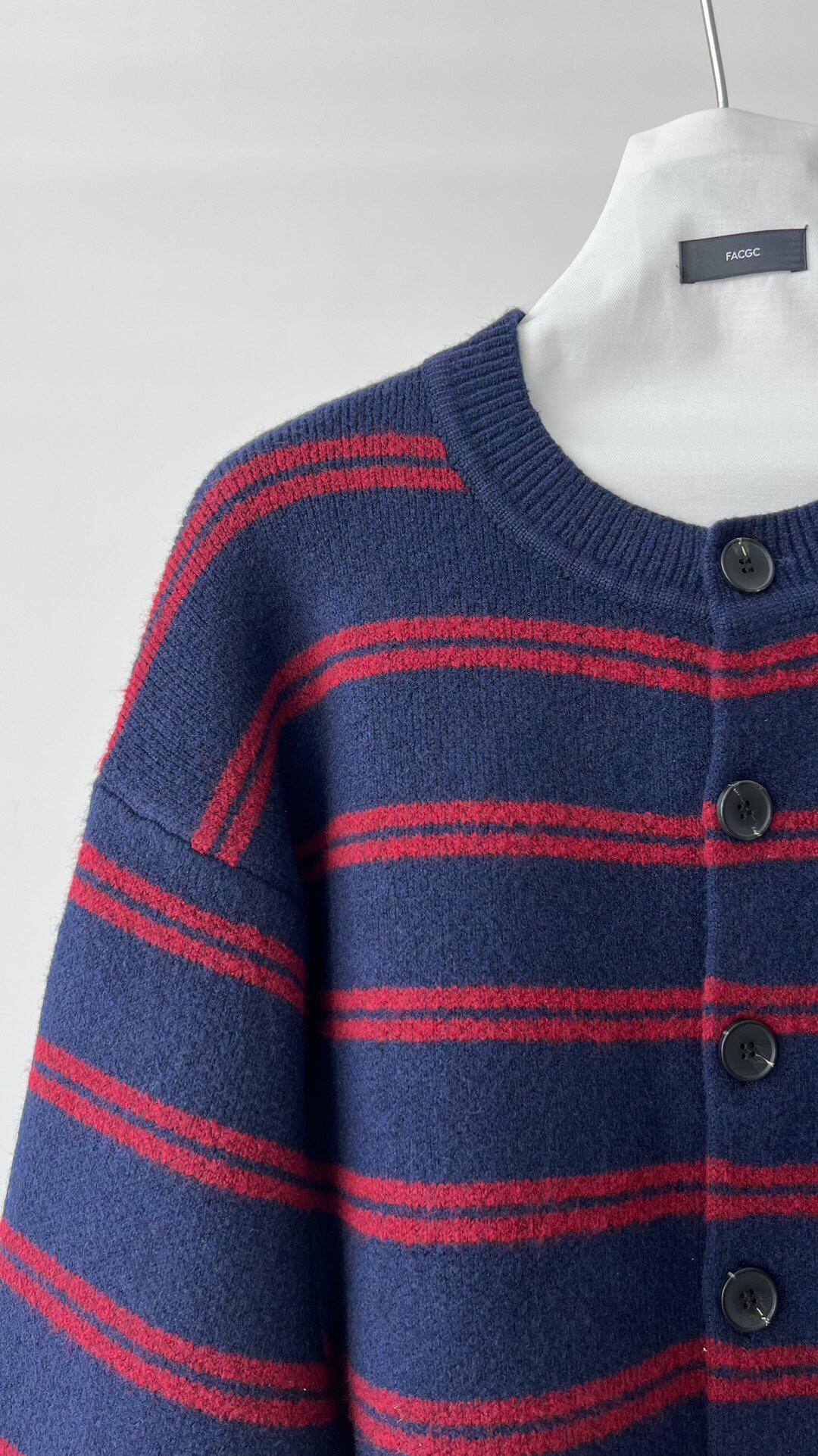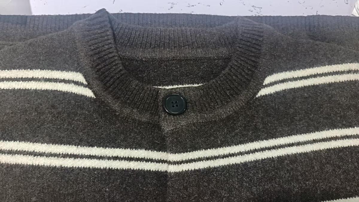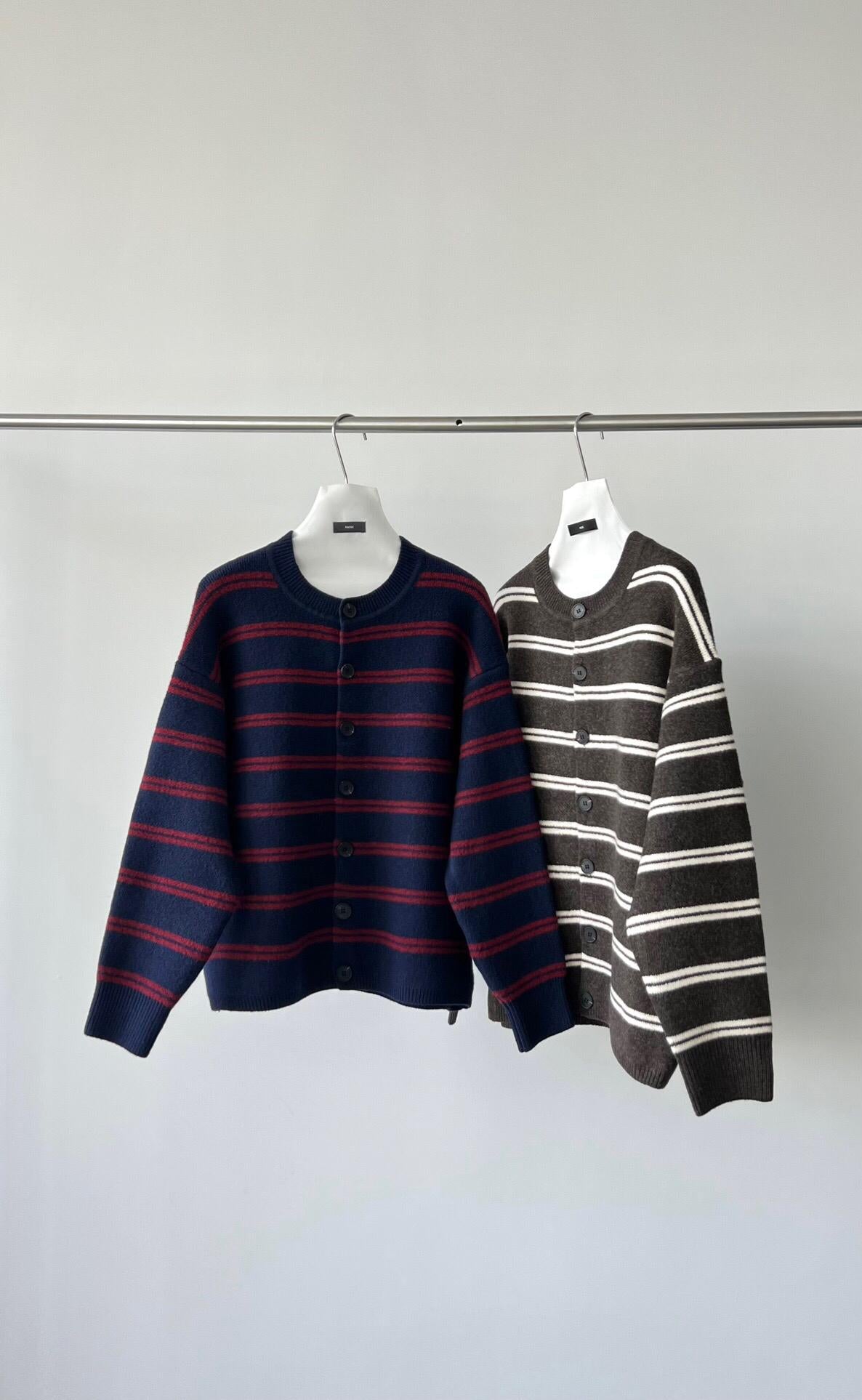 【YS2627】慵懶風圓領條紋開衫保暖毛衣