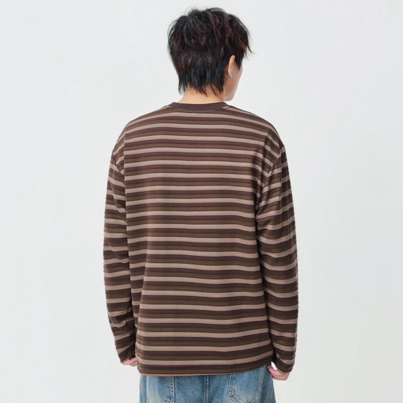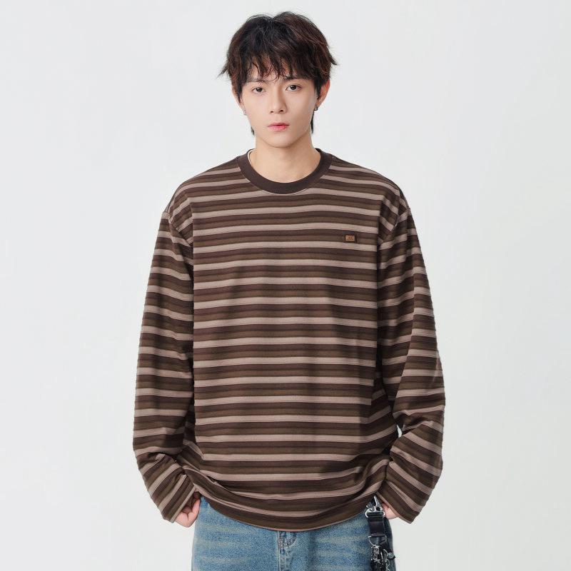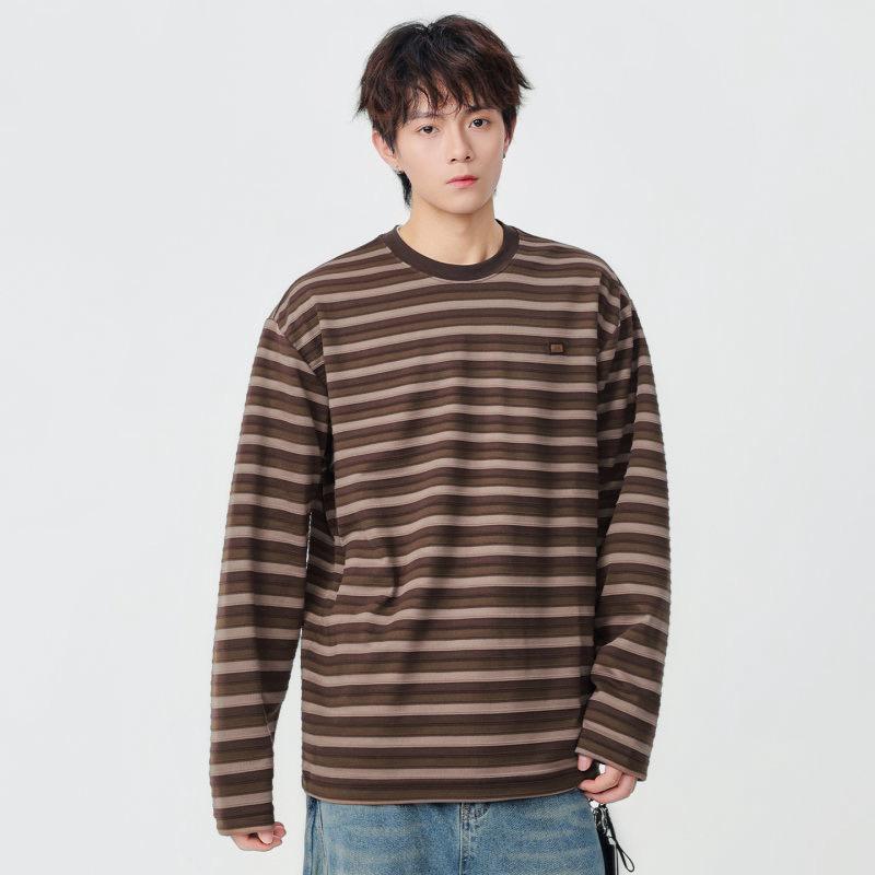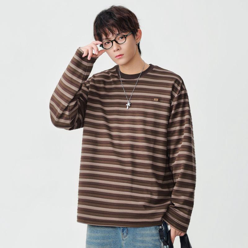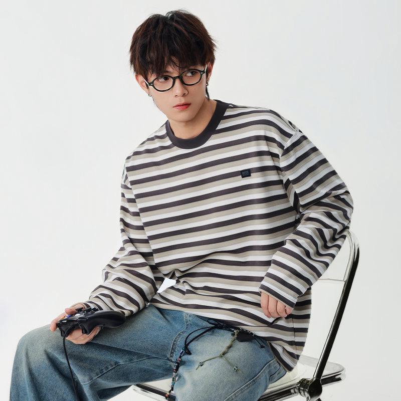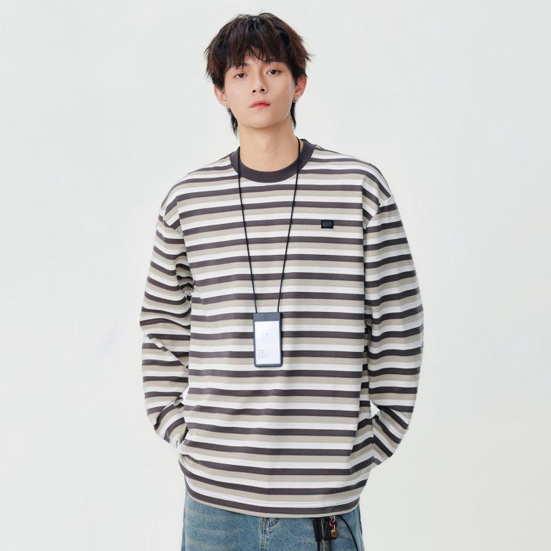 【YS2638】條紋百搭圓領寬鬆上衣打底衫