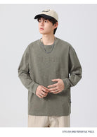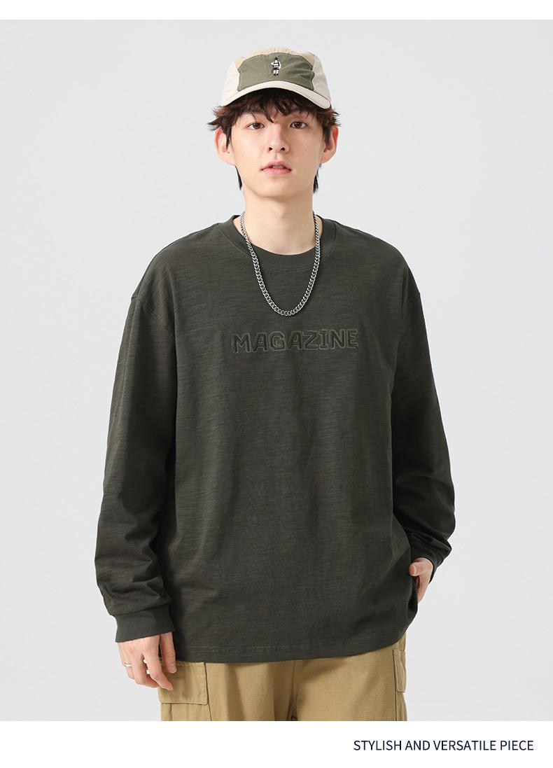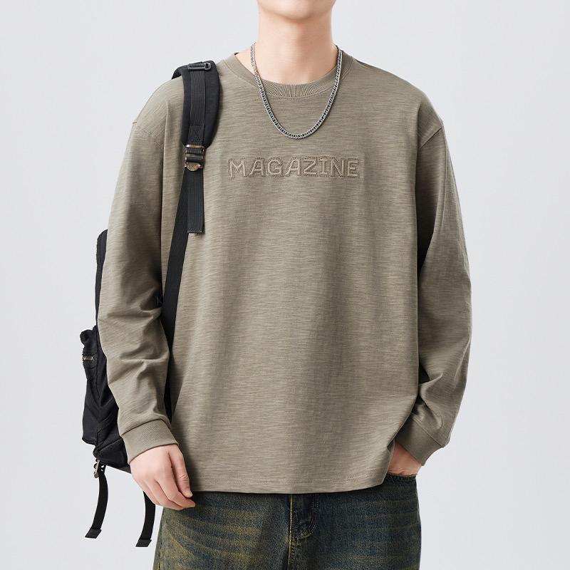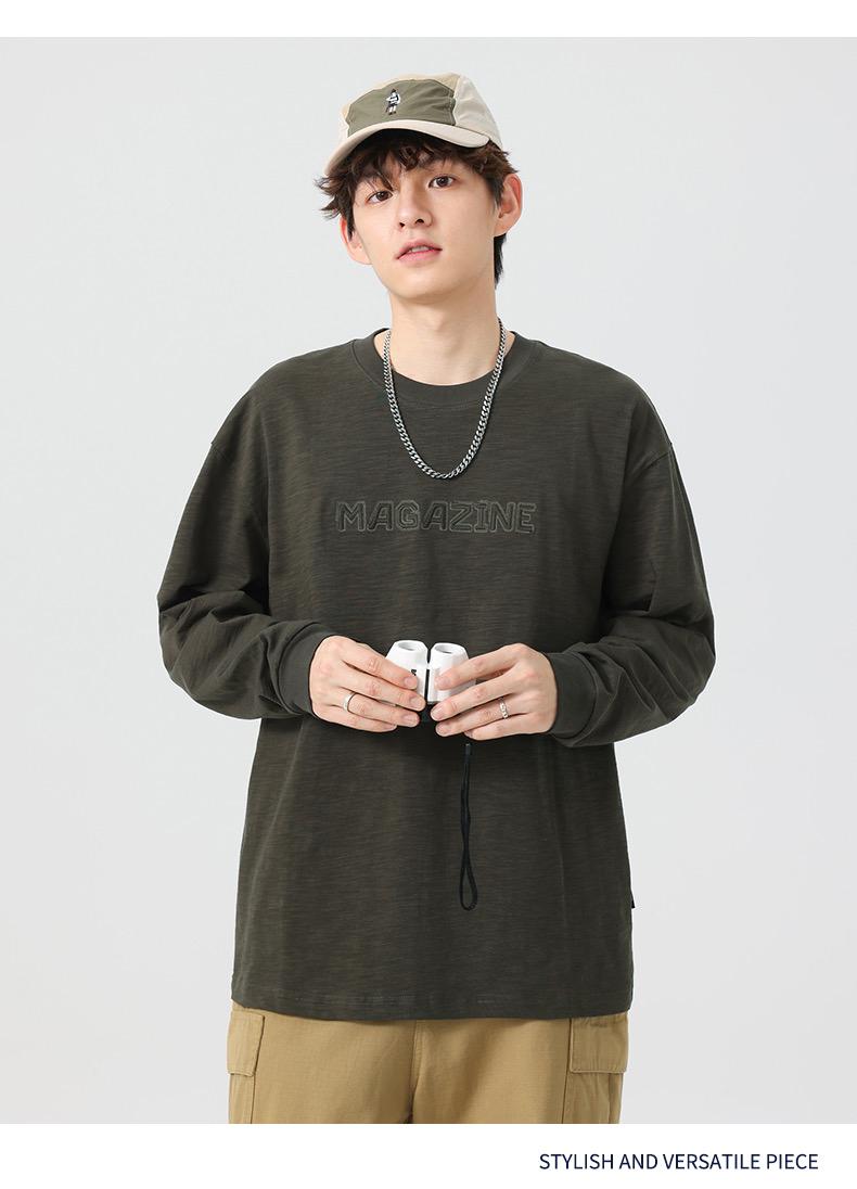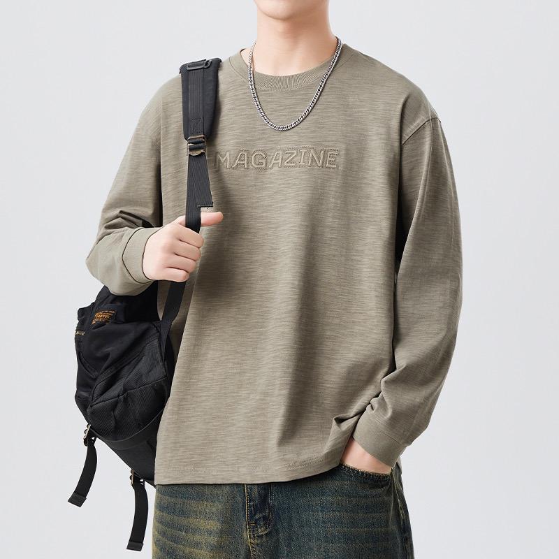 【YS2653】竹節棉圓領長袖T恤男士寬鬆日系復古衛衣