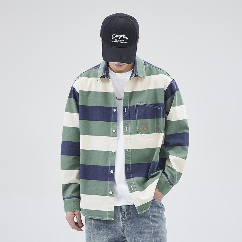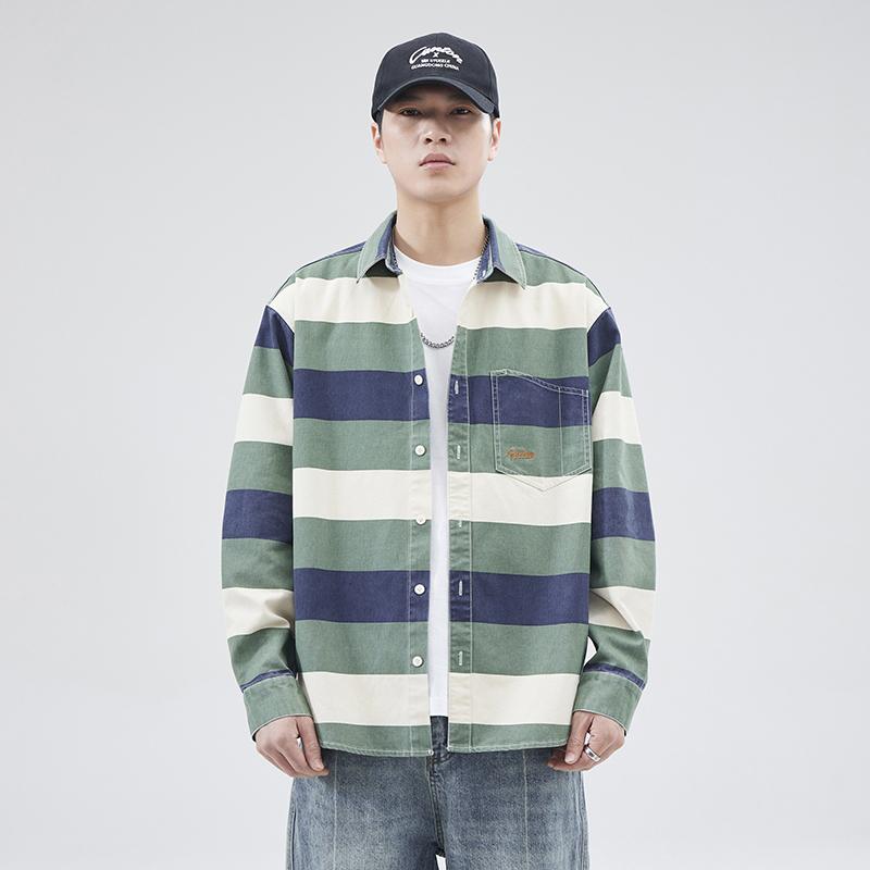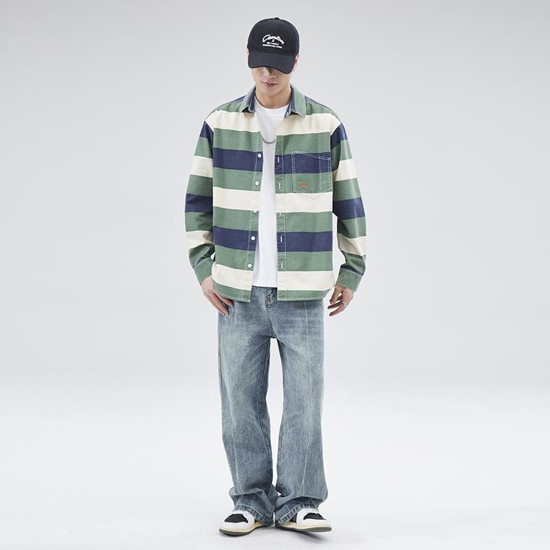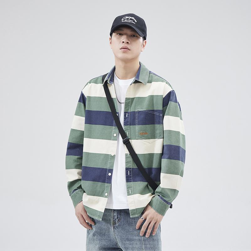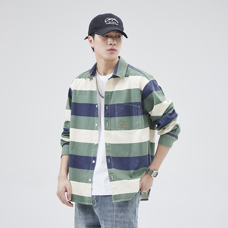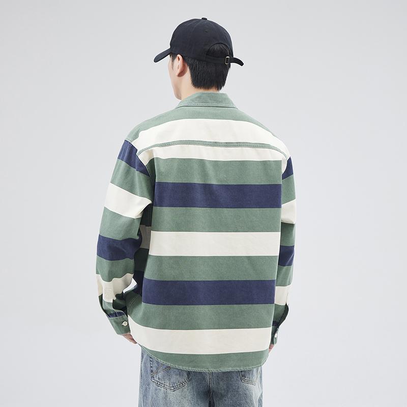 【YS2660】高品質條紋拼接舒適時尚翻領襯衫
