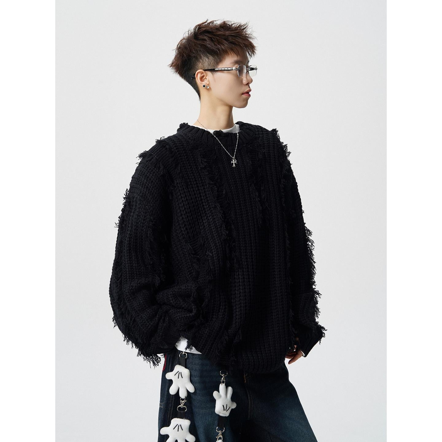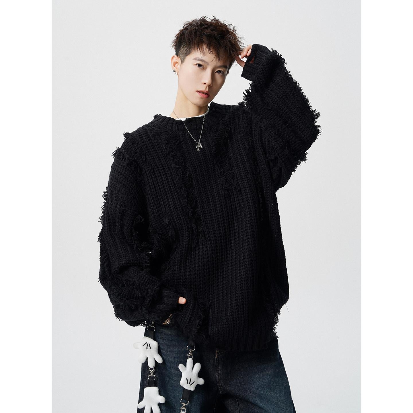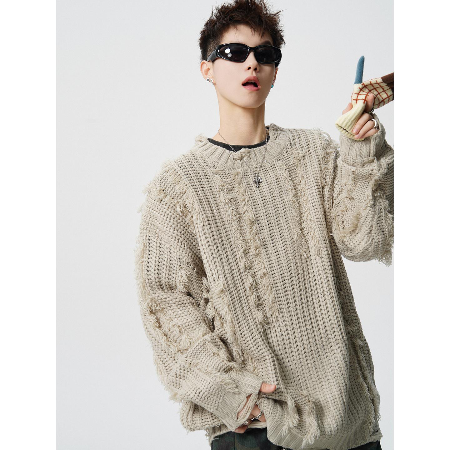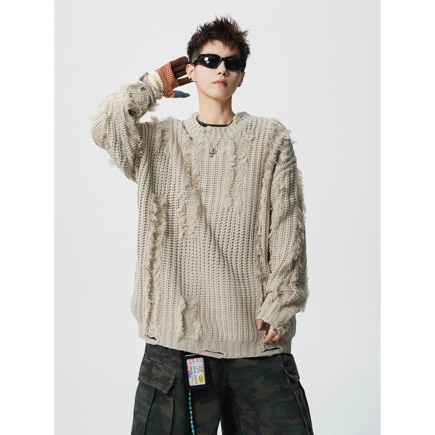 【YS2789】破洞流蘇粗麻花慵懶寬鬆保暖毛衣