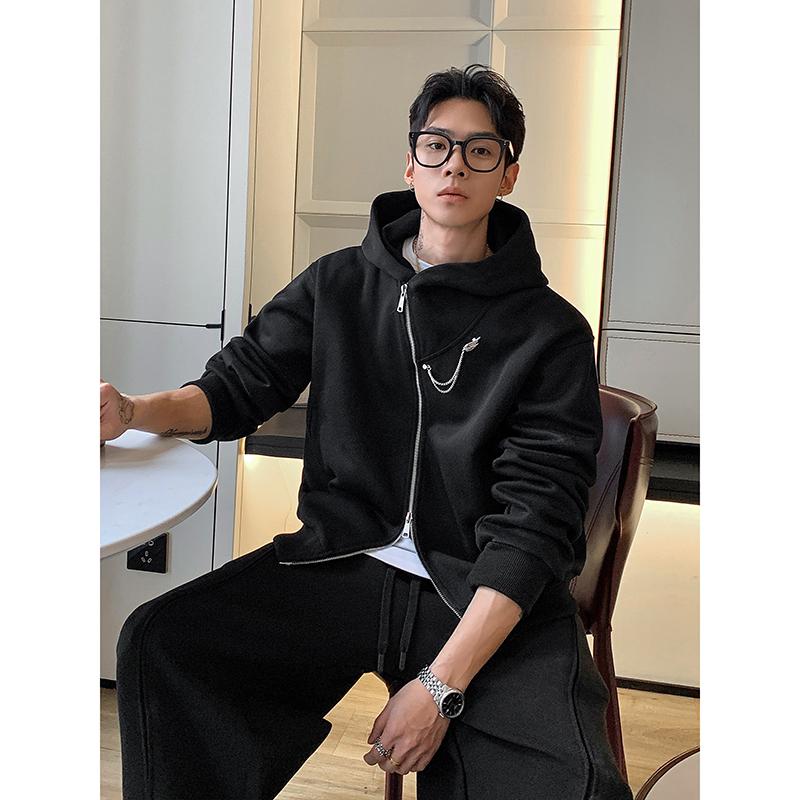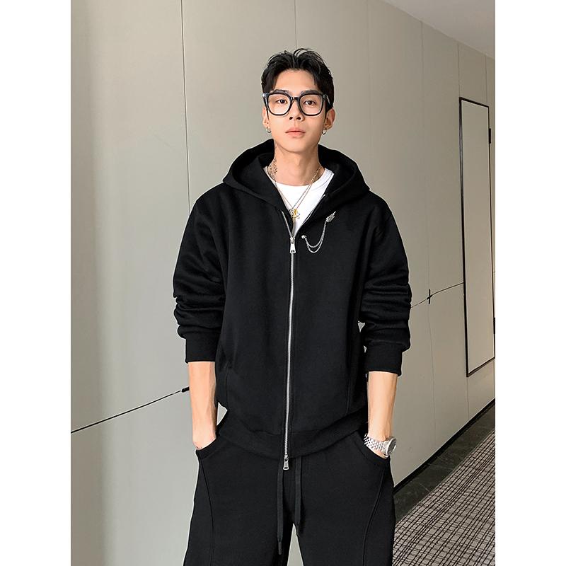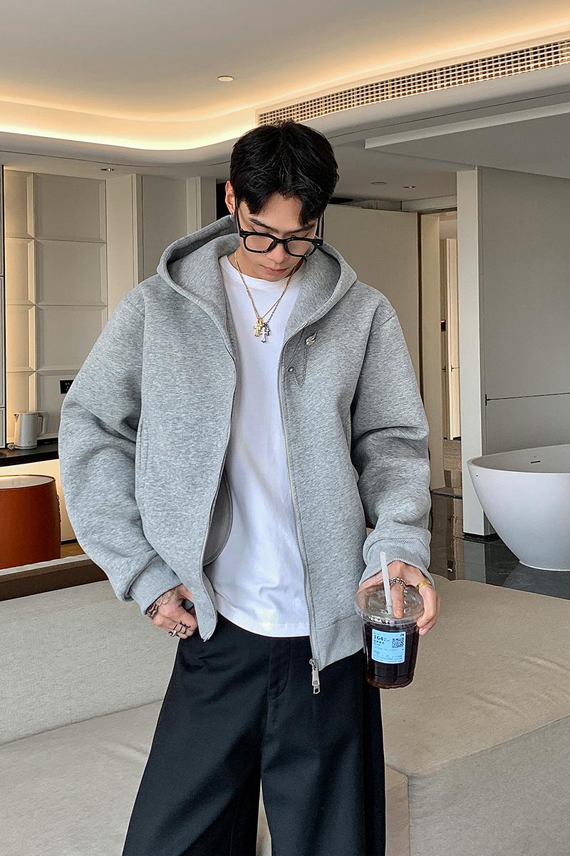 【YS2791】極簡設計感經典復古潮流衛衣韓版寬鬆落肩拉鍊衛衣外套