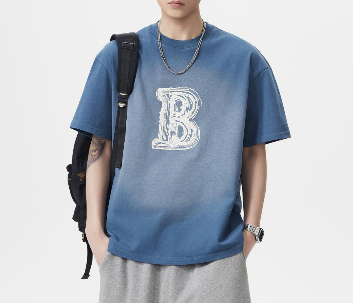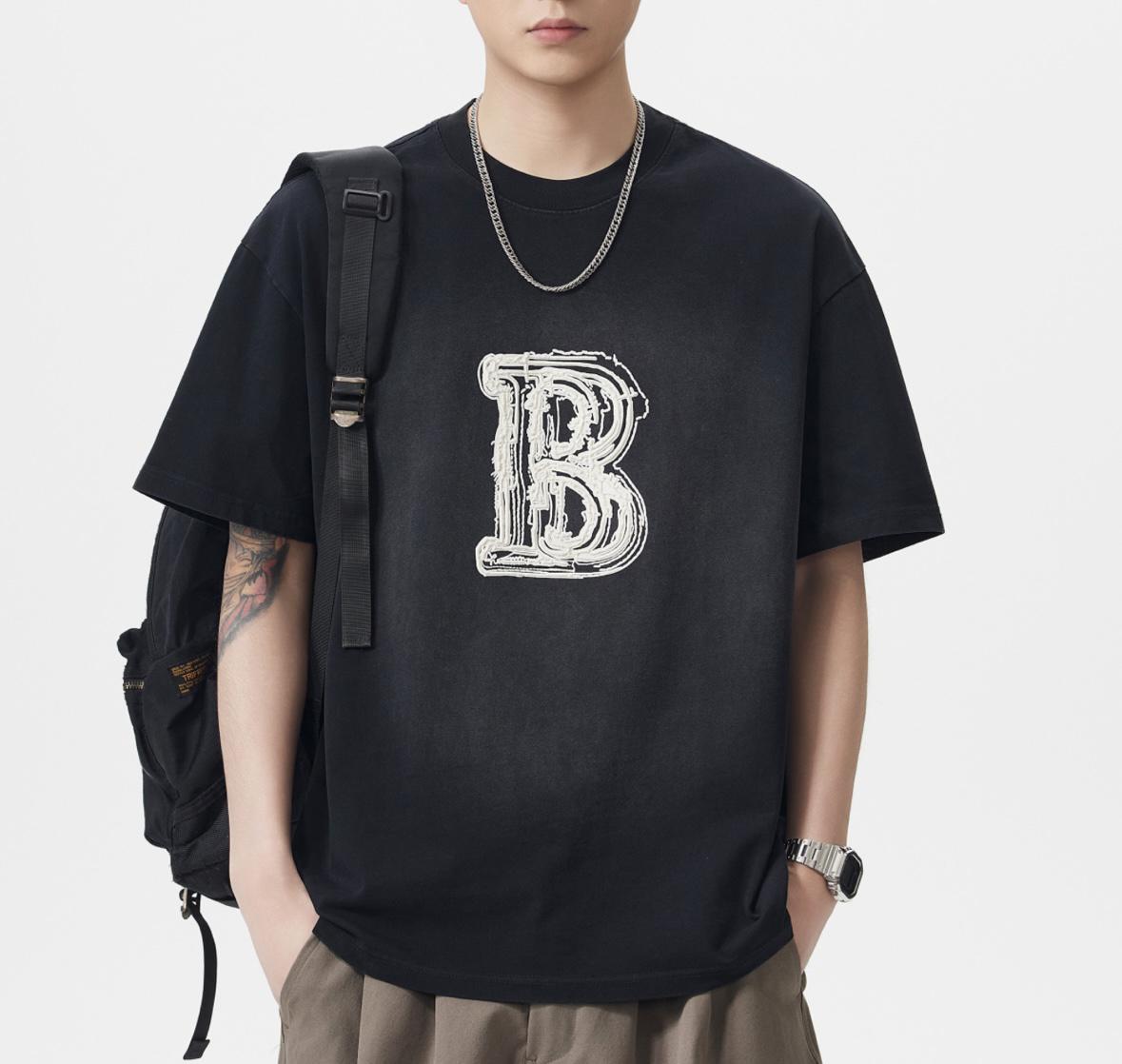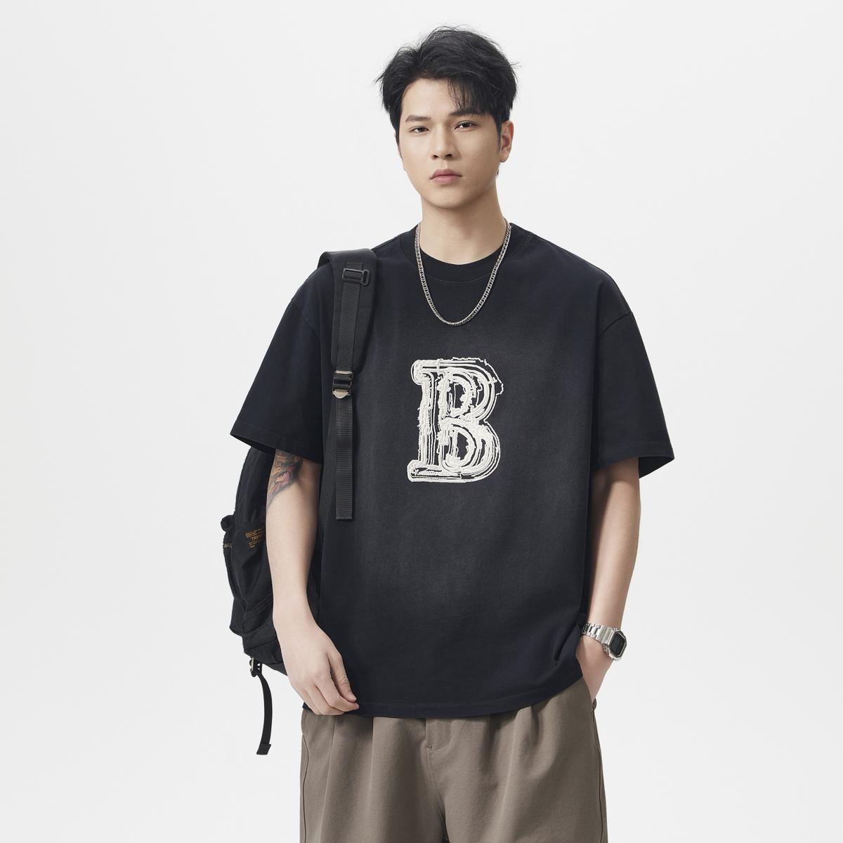 【YS2793】290克棉雙紗闊版潮牌立體圖案印花水洗洗色短袖T恤