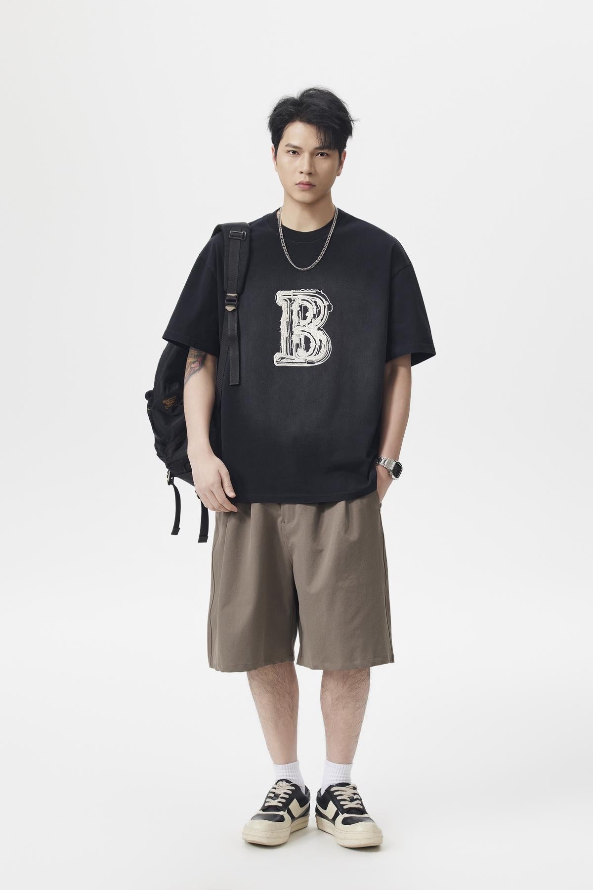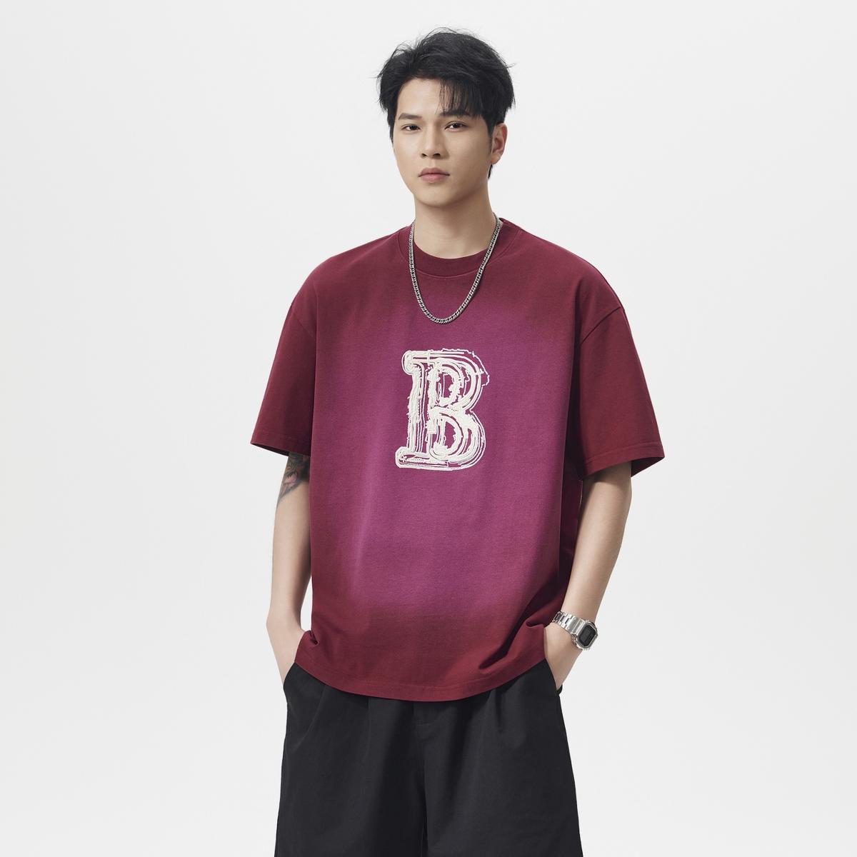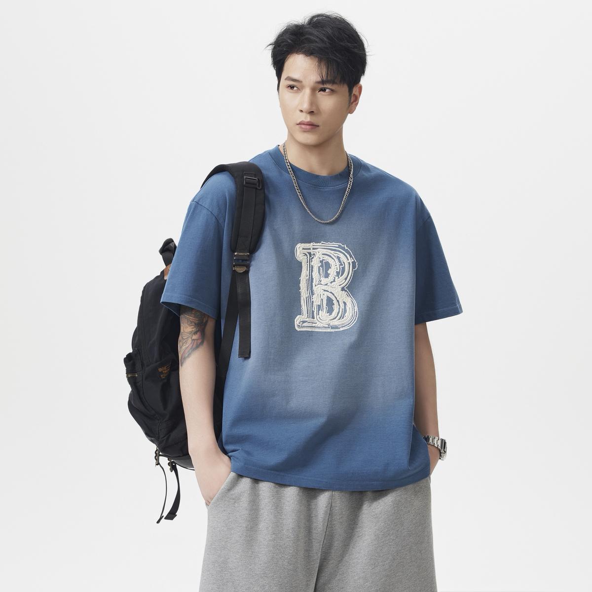 【YS2793】290克棉雙紗闊版潮牌立體圖案印花水洗洗色短袖T恤