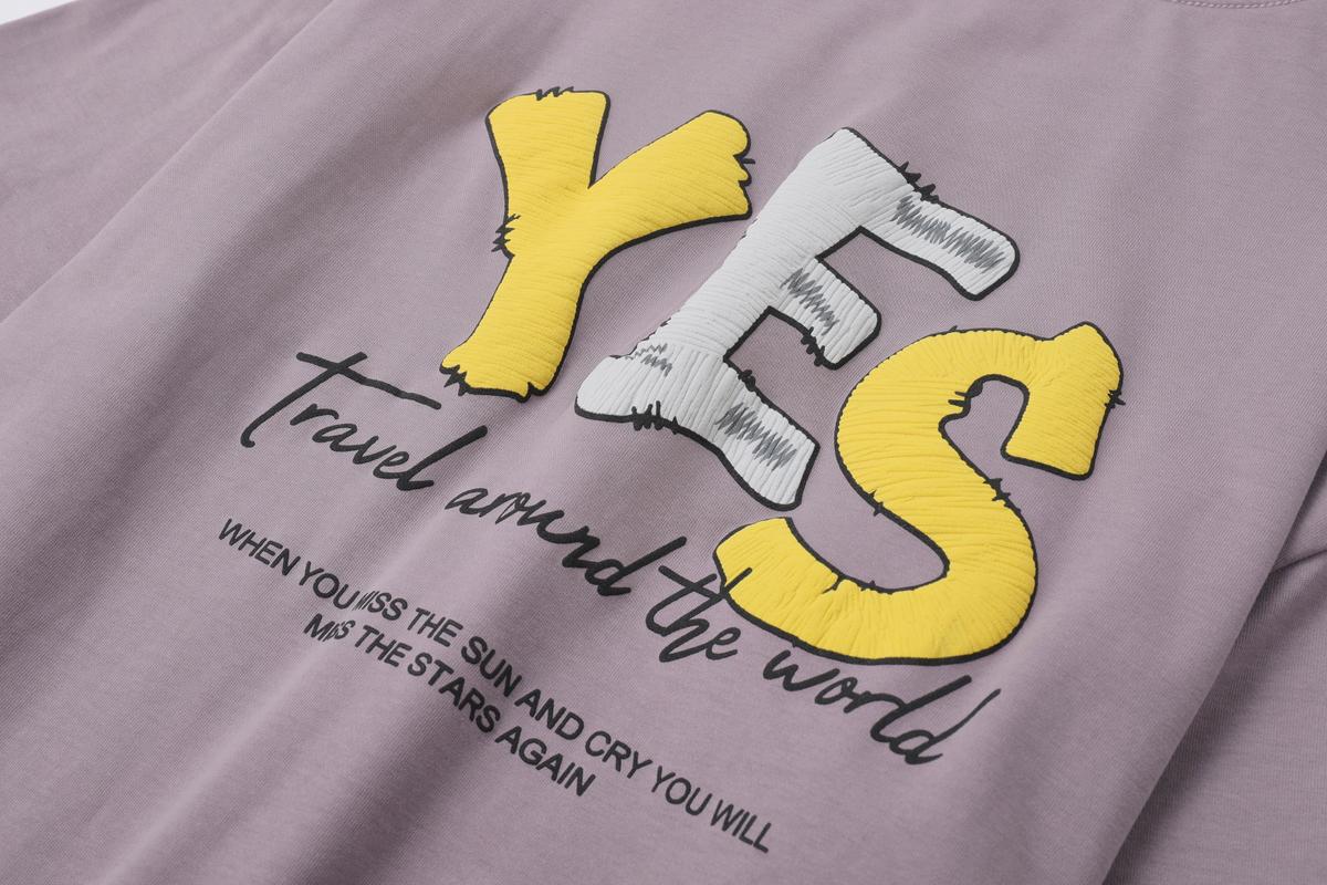 【YS2795】多重工藝舒適親膚YES字母立體感短袖T恤
