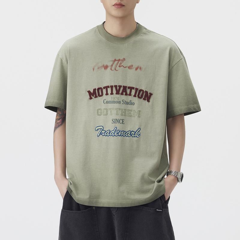 【YS2818】數碼直噴立體繡花多工藝洗水炒色做舊短袖T恤