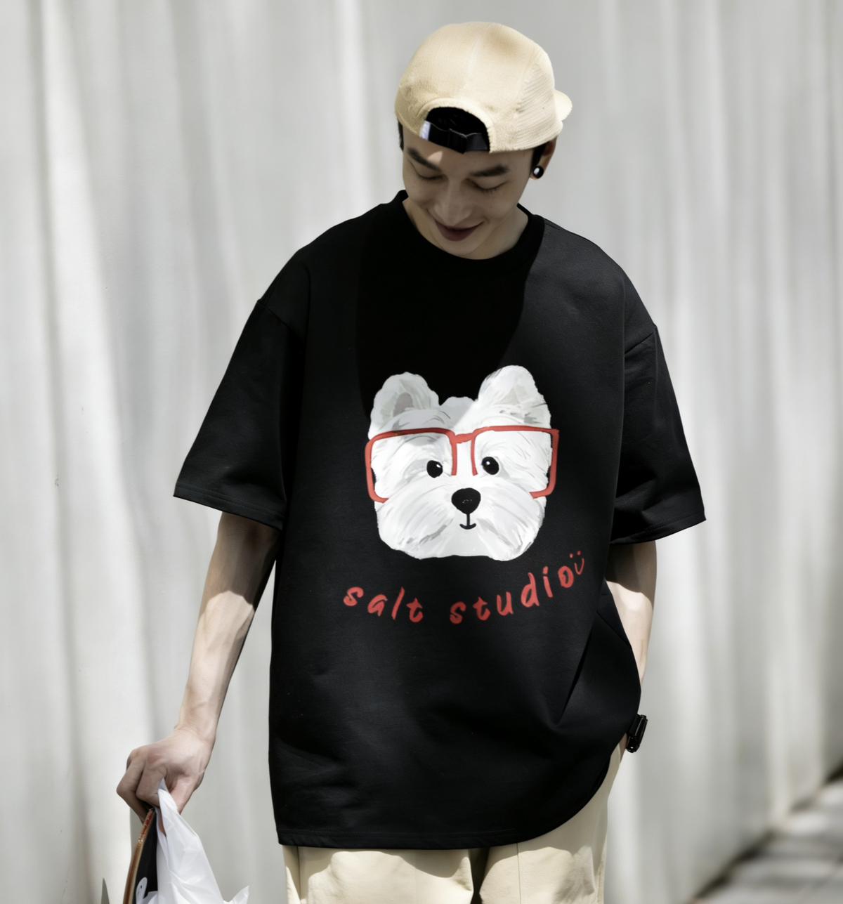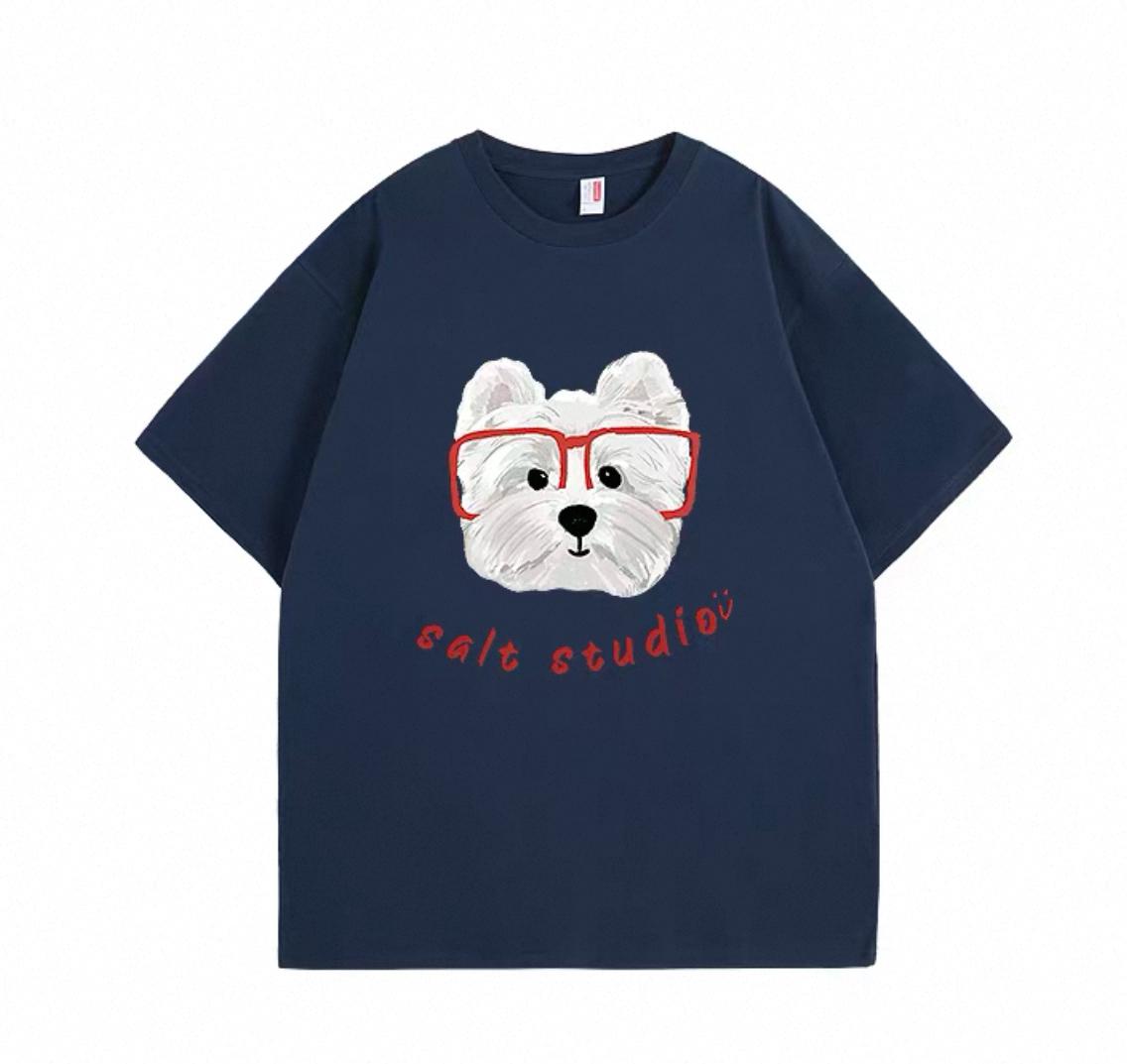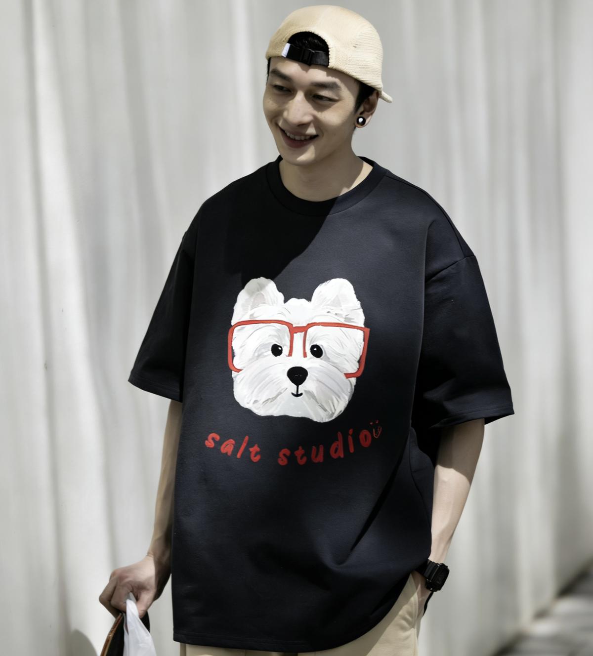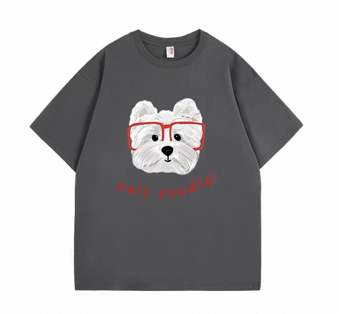 3. 【YS2850】多巴胺小狗塗鴉寬鬆大版休閒情侶款短袖T恤