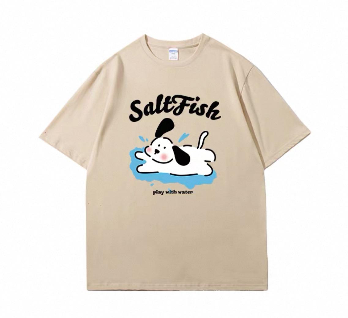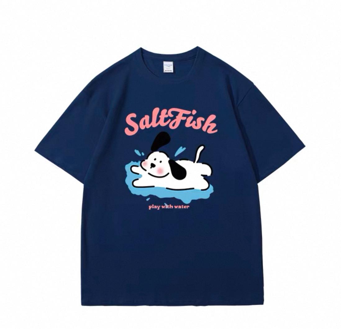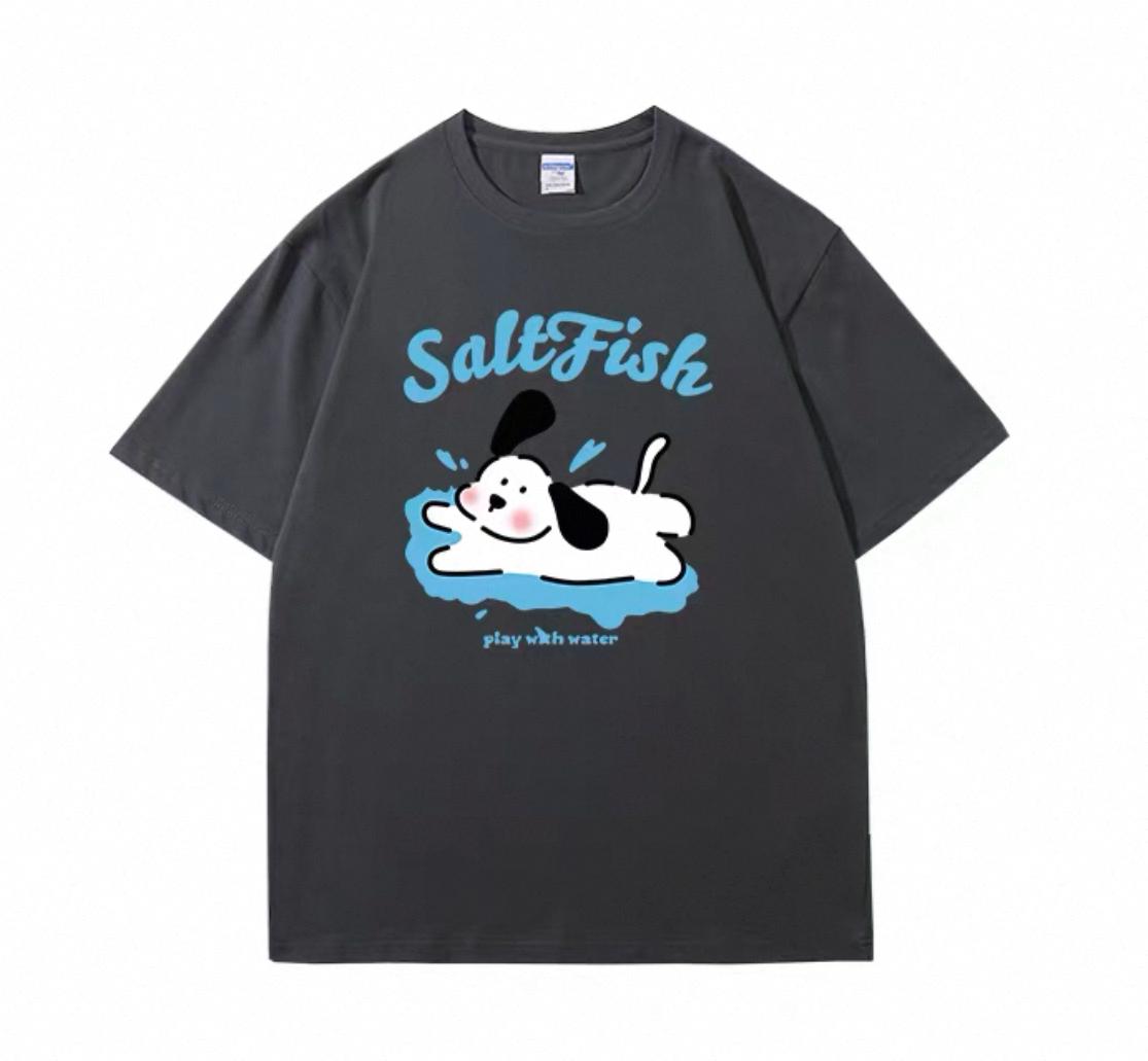 【YS2854】玩水小狗塗鴉寬鬆休閒oversize情侶裝短袖T恤