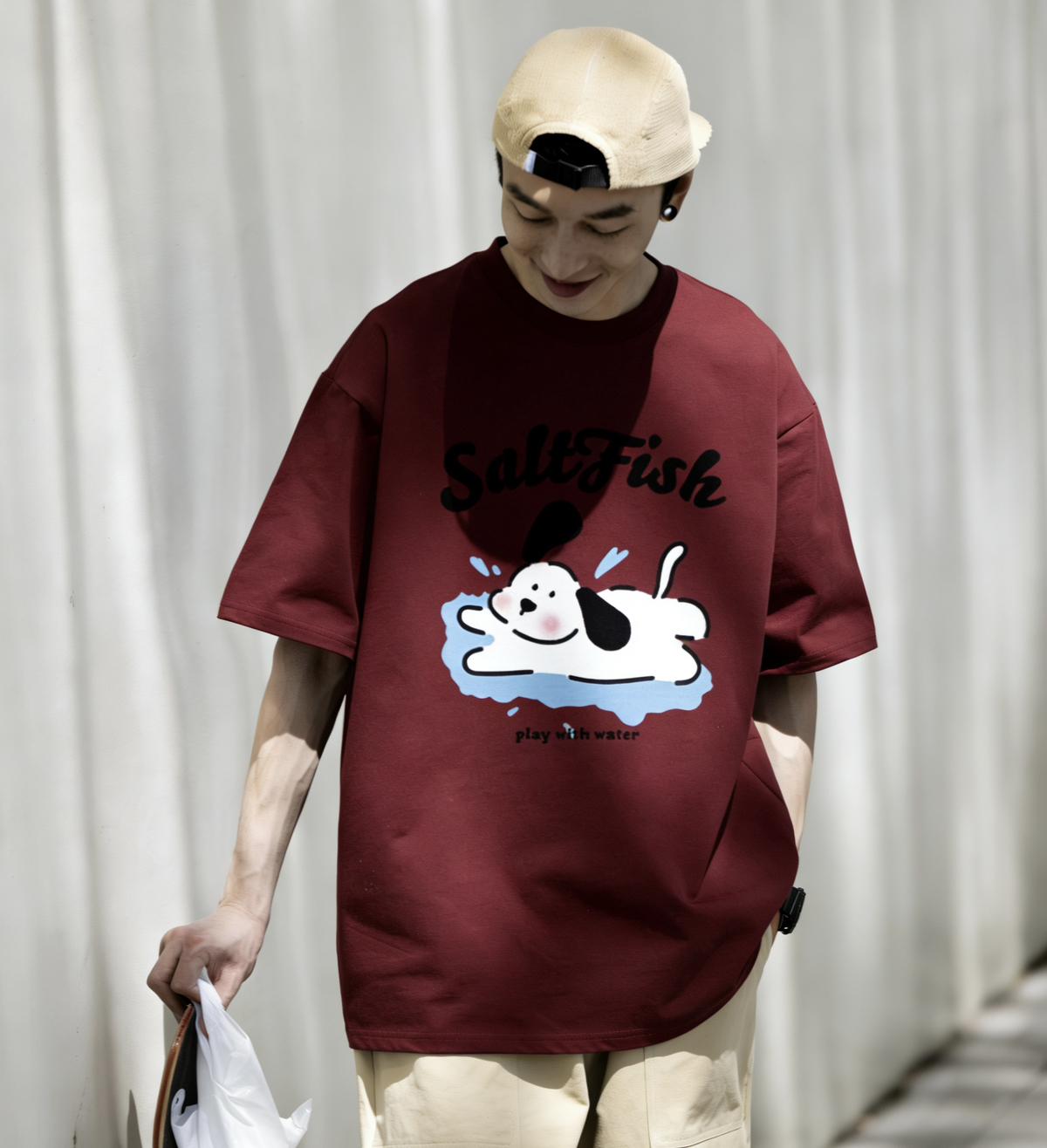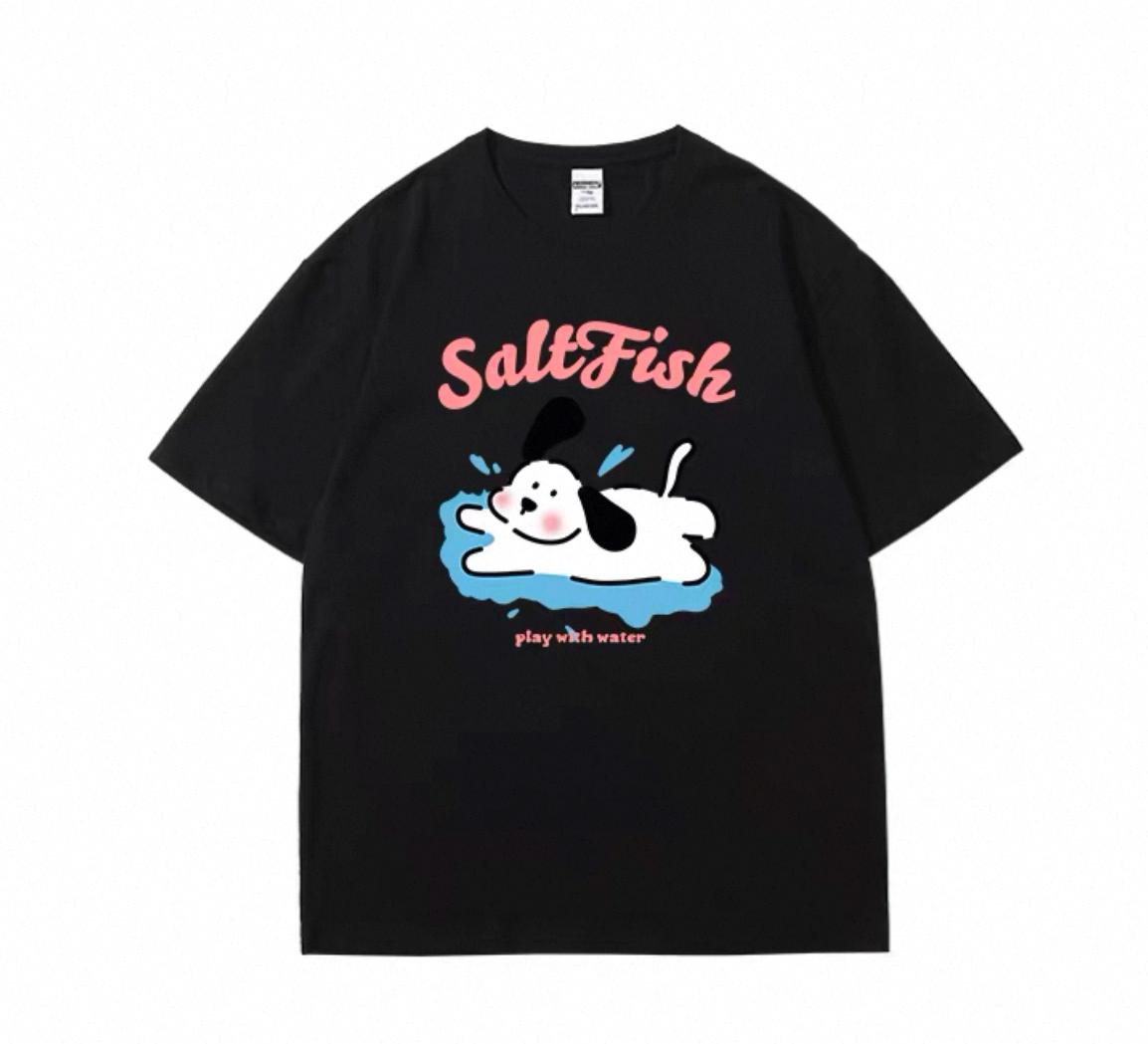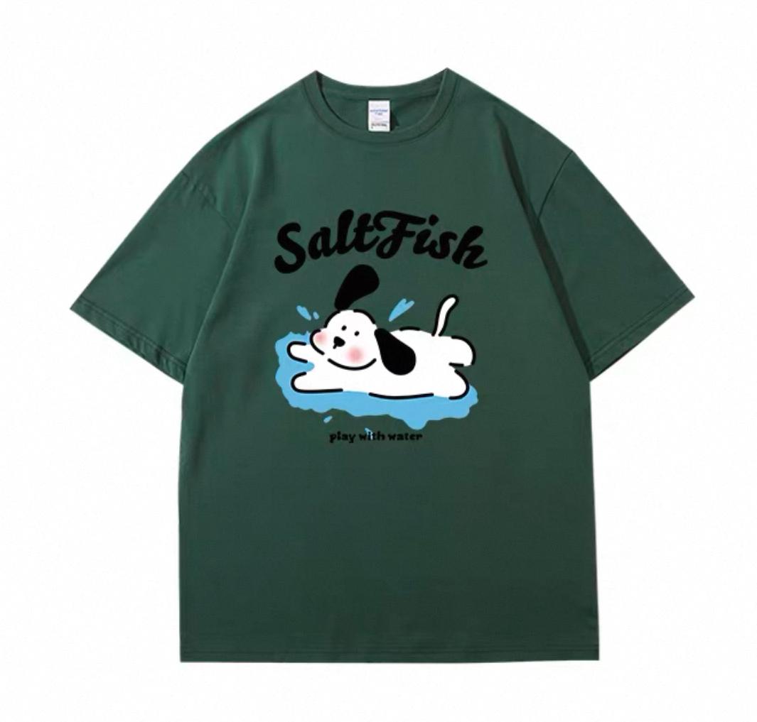 【YS2854】玩水小狗塗鴉寬鬆休閒oversize情侶裝短袖T恤