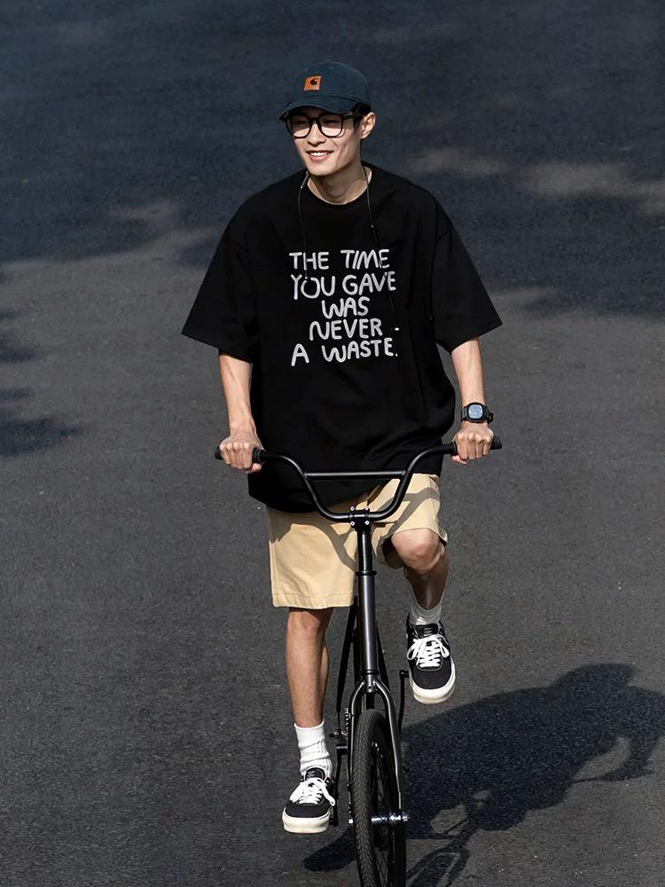 【YS2856】美式時尚潮流寬鬆休閒中性風情侶裝圓領短袖T恤(260G寬鬆)