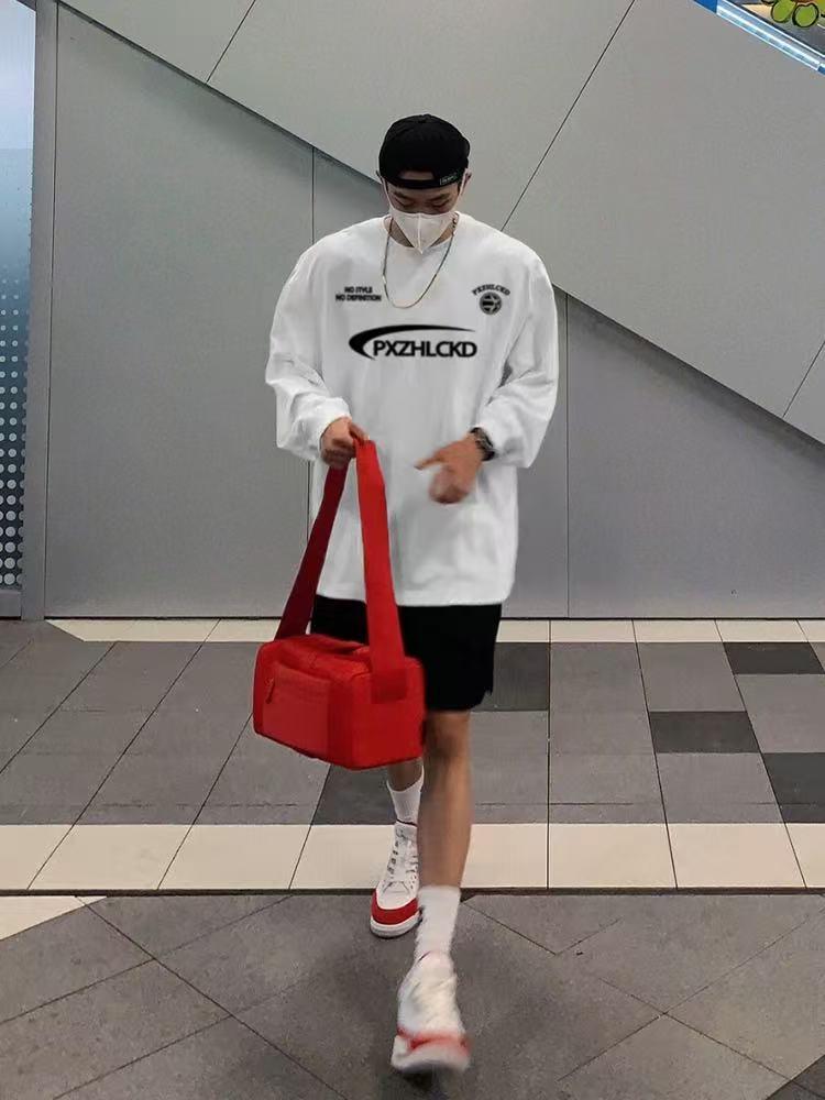 【YS2549】美式時尚潮流螺紋袖口長袖T恤