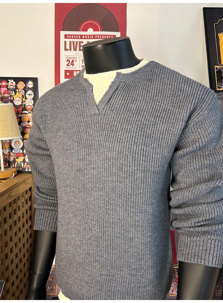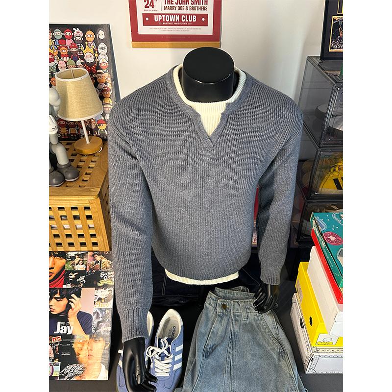 【YS2592】冬季假兩件美式針織寬鬆套頭保暖毛衣