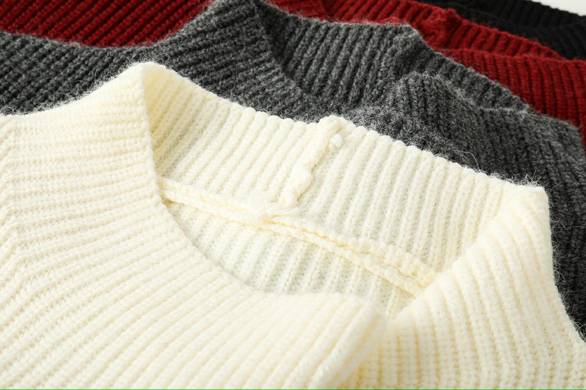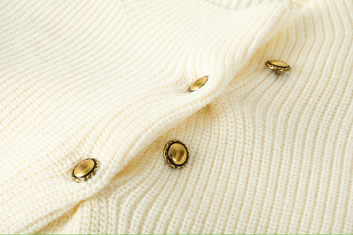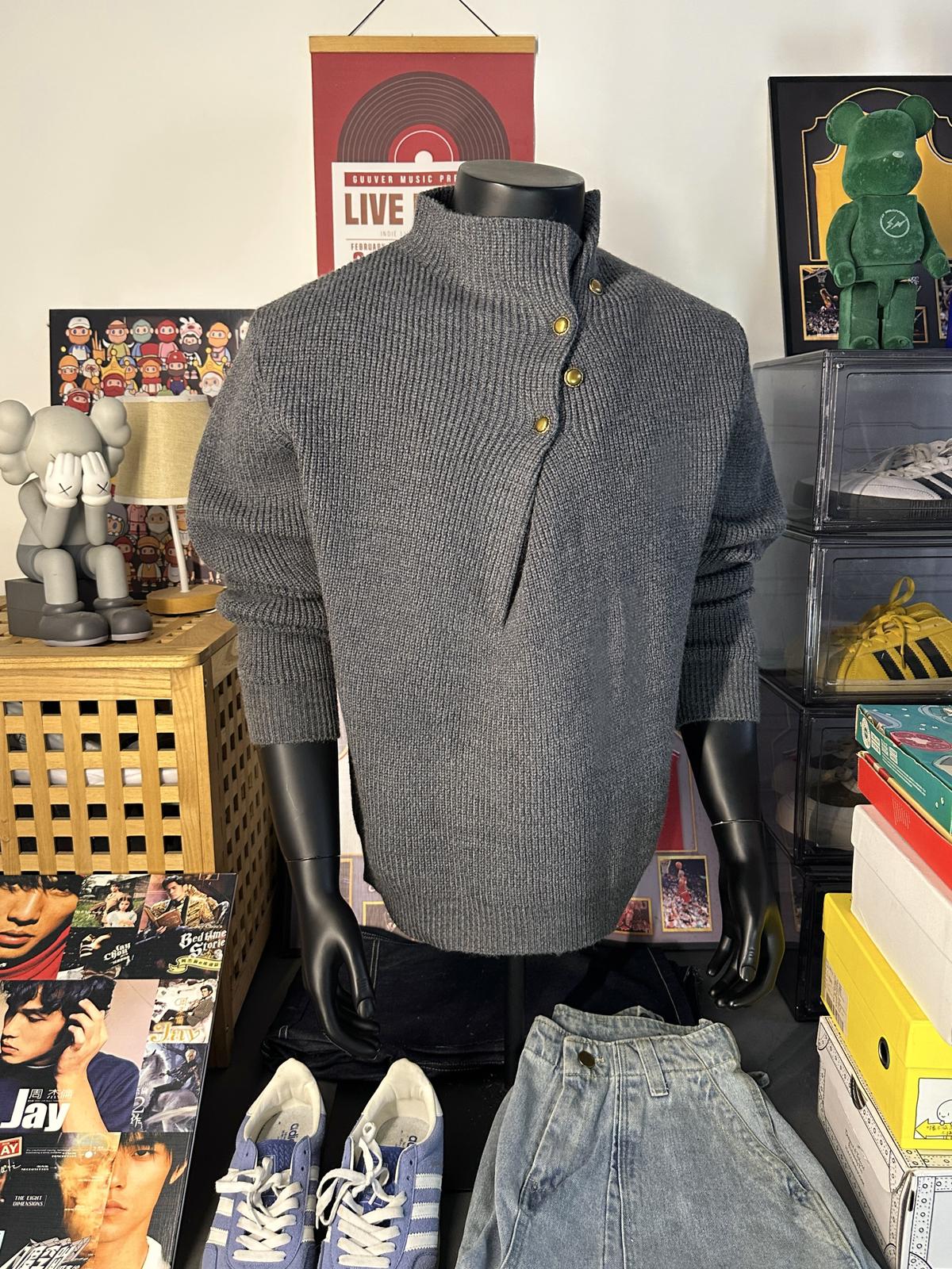【YS2593】港風復古金屬扣不規則半高領寬鬆保暖針織加厚保暖毛衣