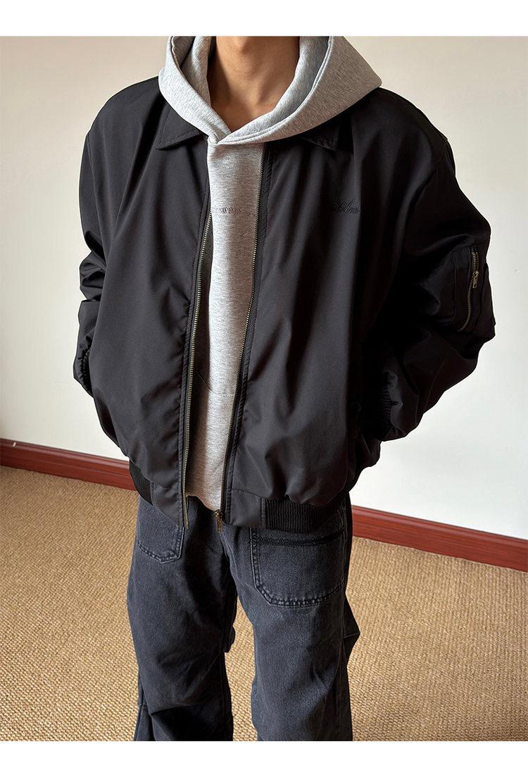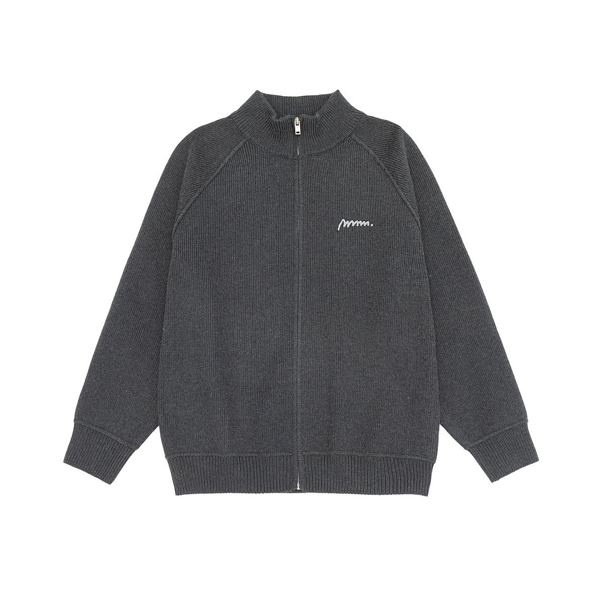 【YS2601】鬆弛感立領拉鍊字母刺繡上衣針織開衫