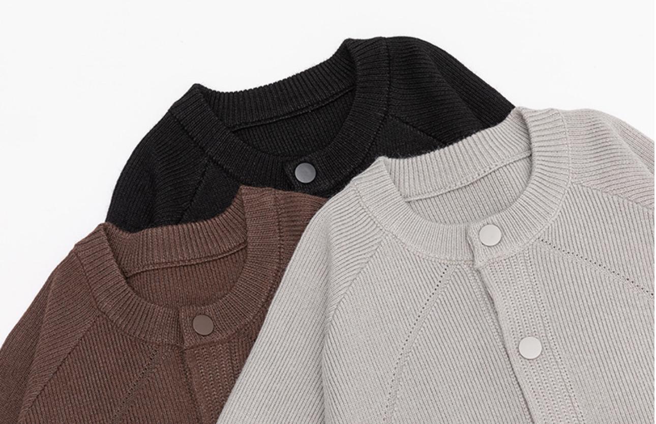 【YS2599】純色百搭圓領單排扣寬鬆上衣針織開衫