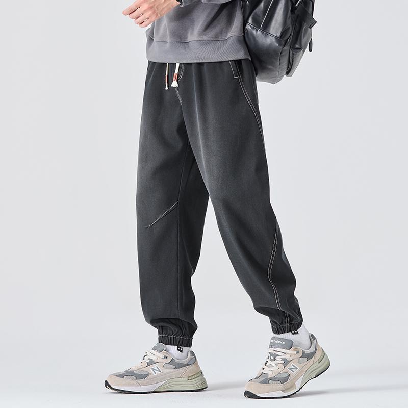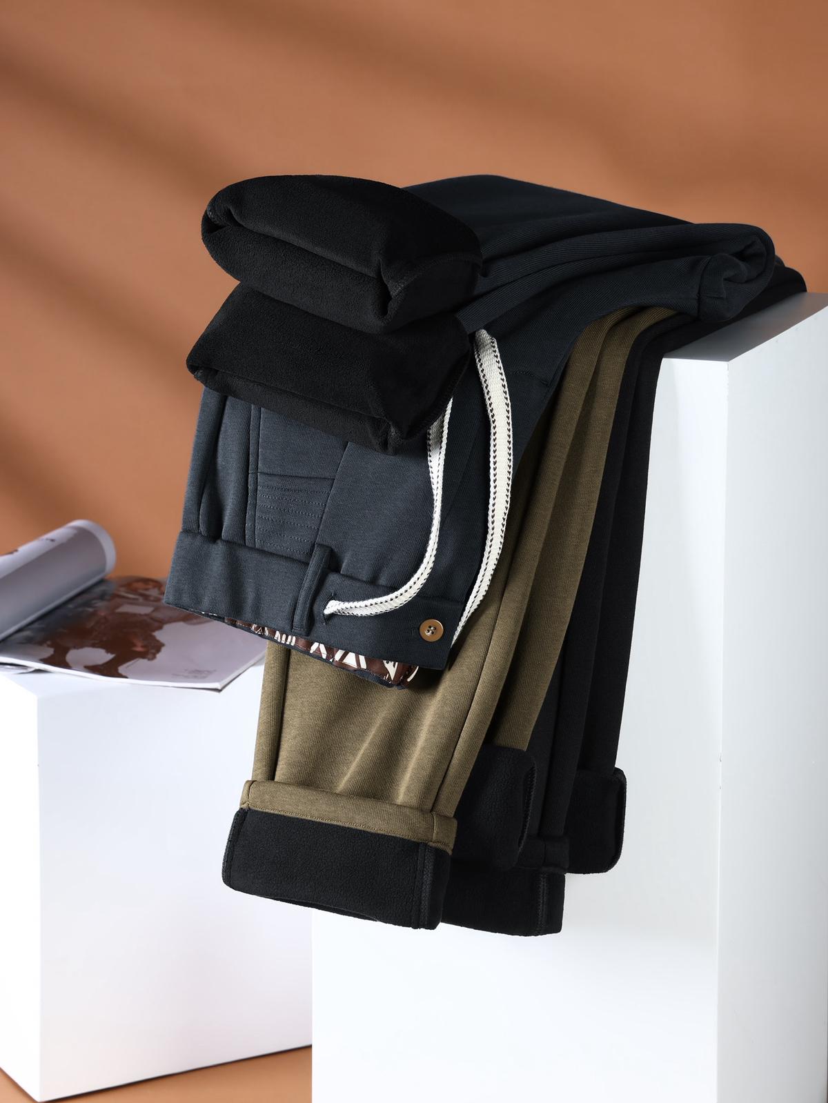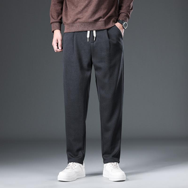 【YS2602】潮牌簡約舒適百搭保暖合身鬆緊腰加絨加厚休閒褲