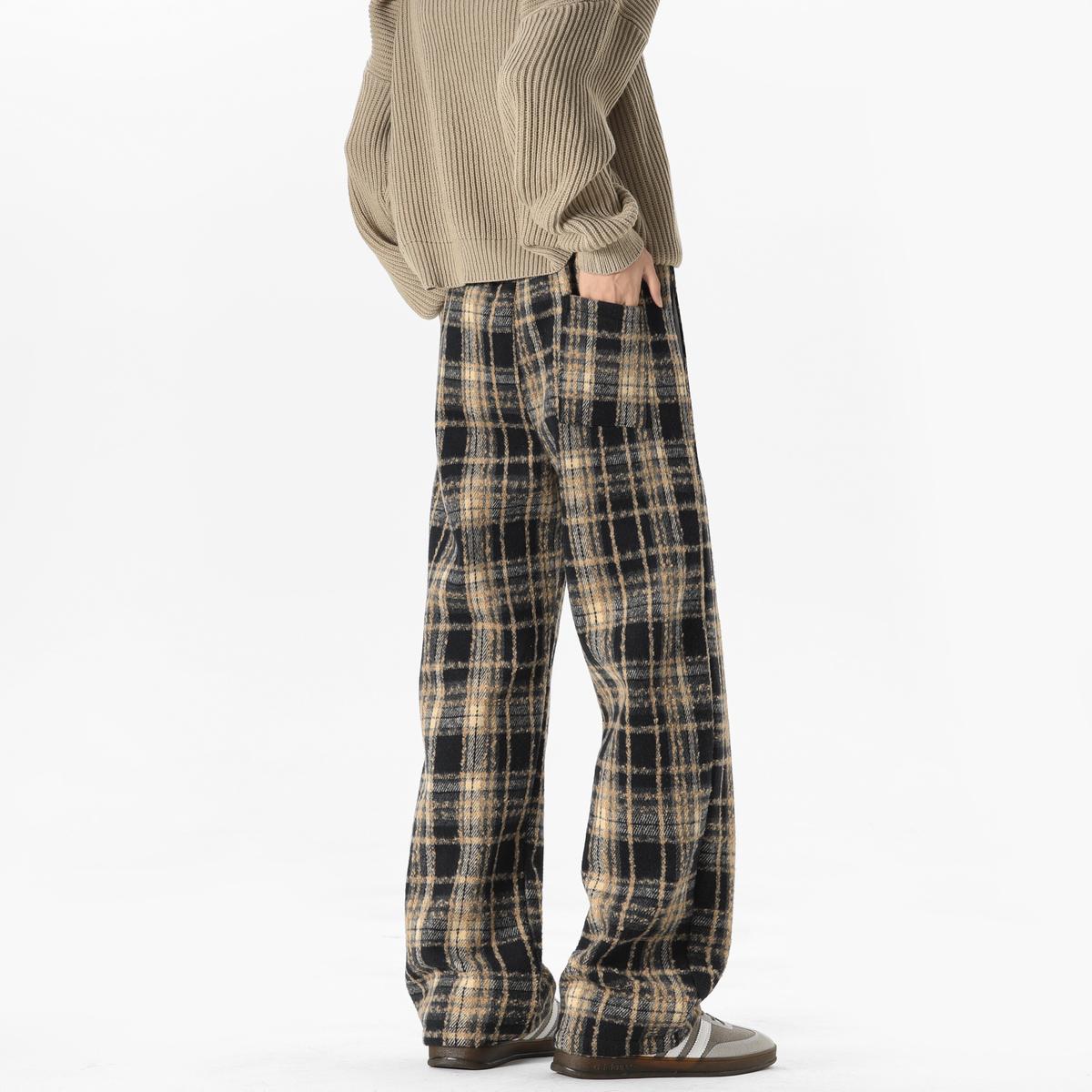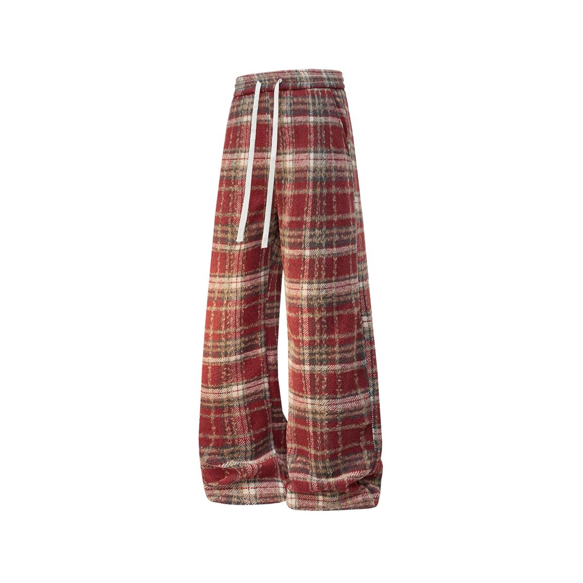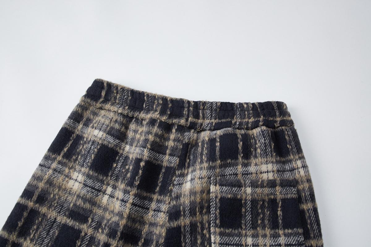 【YS2603】加絨毛呢直筒寬鬆格子加厚休閒褲